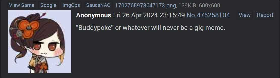 >>563253713TrvkeThere's no reason to use canon relationships to shitpost a loser like Pagther.