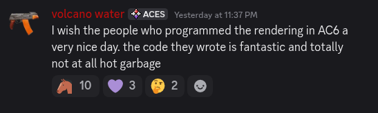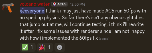 >>563352279>recomp projectIt seems a dude had a major breakthroughWe might see it in this year https://www.reddit.com/r/acecombat/comments/1s2m3r0/ac6_recompilation_effort_progress_update_good_and/