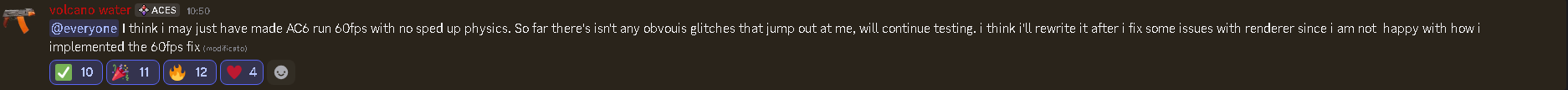 More AC6 updates in pic rel.Also, the dev reverted the native 60FPS patch (for now) as>it caused too many bleeding edge bugs and randomly broke things related to Asset loading in cutscenes. I'll return to it after i fix up the renderer some more