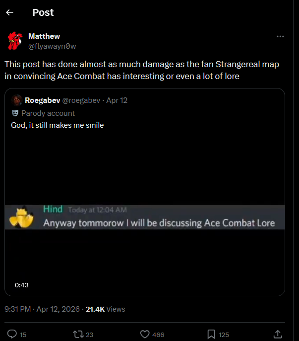>>563590720Huh.I just realized I misread the tweet, I thought he was referring to the meme making people think that Ace Combat didn't have something to it other than the surface-level memes about Zero and whatnot, not that it made people think that Ace Combat *had* lore in the first place.FAN continues to be amazingly consistent at making me like him less and less with each tweet he makes.