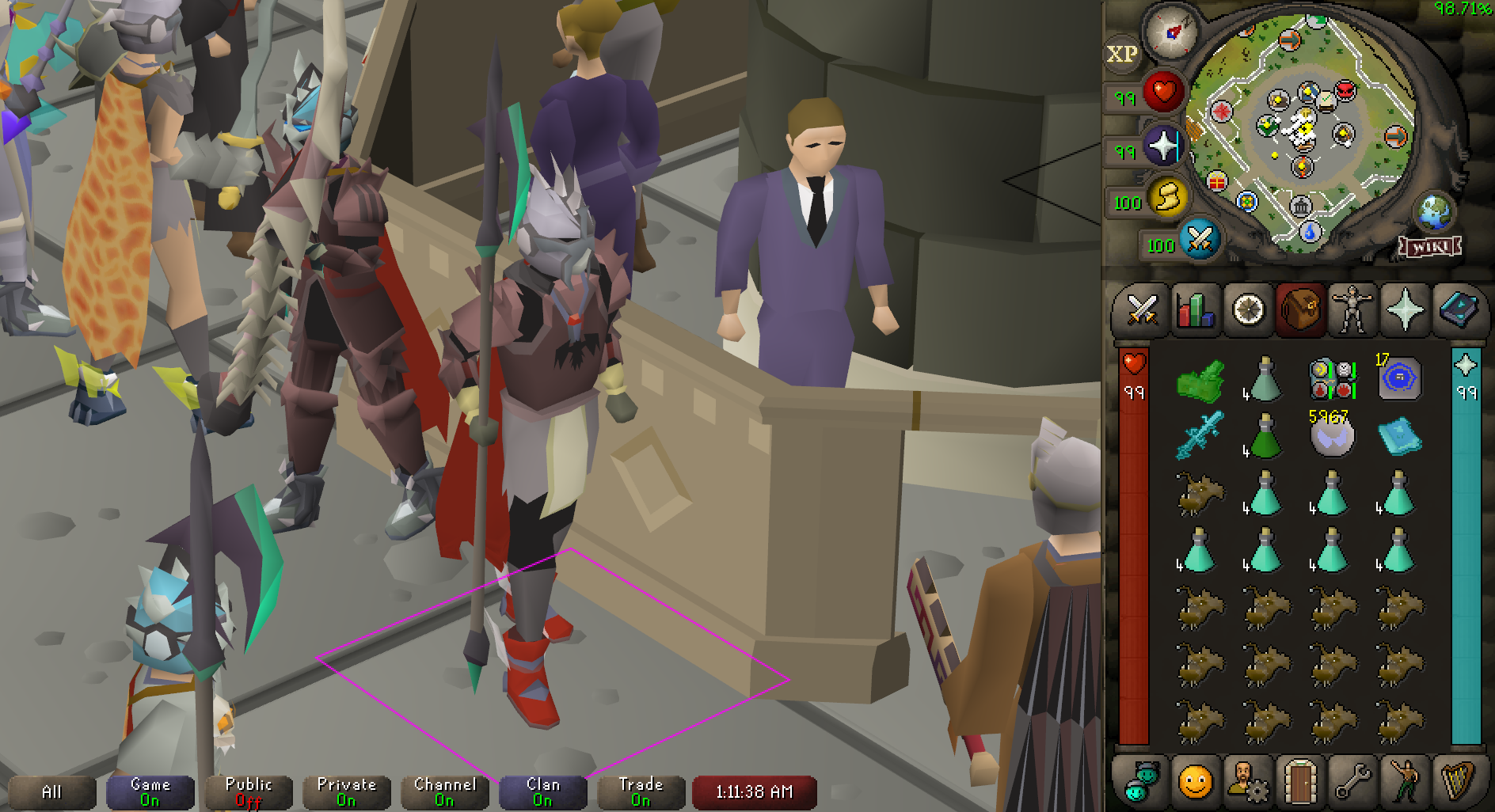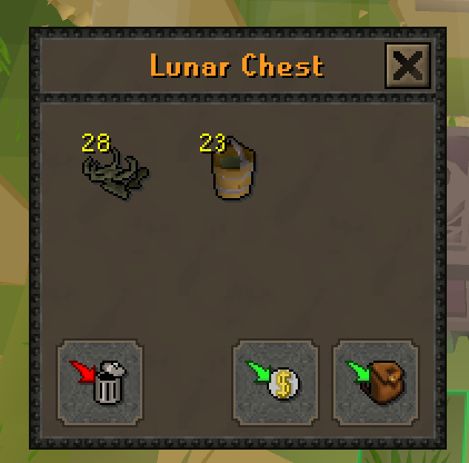 just got my chug jug my reagent pouch and my potions storage im green logged now tomorrow ill work on trouble brewing for fashionscape purposes