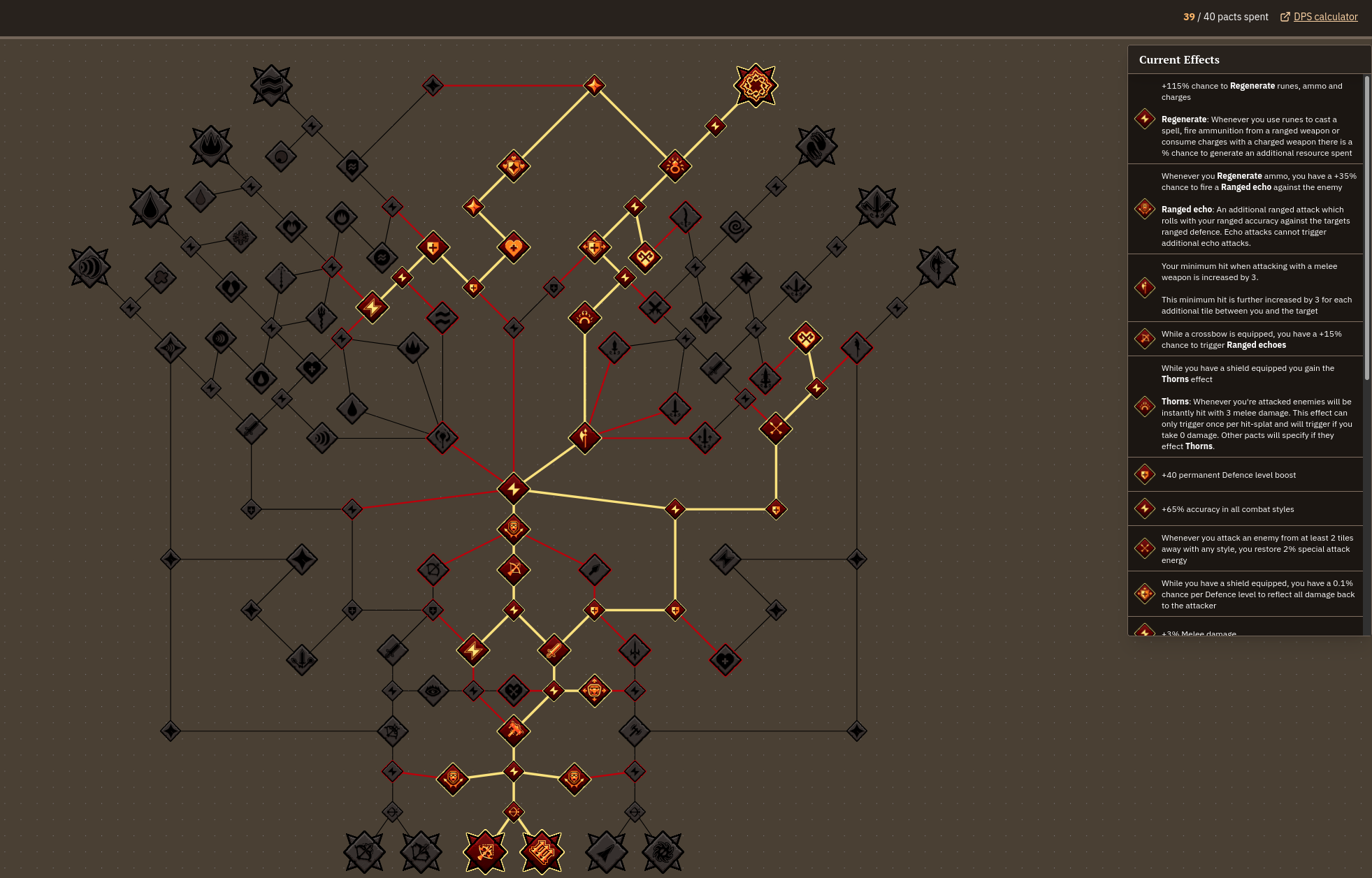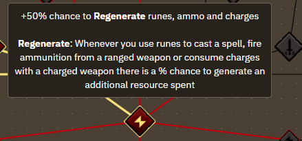>>563354128>1 roll to regenerate all 7 Airs and 1 Wrath?YesRegenerate triggers per spell cast/ranged attack/charged weapon attackYou have a 50% chance to refund the cost of the spell. Effects will trigger when the regenerate succeeds, based on the rune cost.eg. Water Surge costs 10 Water runes, with the Water pact you're healed 1 per rune regenerated, with a 50% regenerate chance you're getting on average 5 Water runes and 5 HP every time you cast the spell.If you have >100% it will always succeed and any additional chance is another roll, eg. with 120% you would be guaranteed 10 Water runes -> 10 HP with an additional 20% chance to proc again (giving you 20 HP), so you expect an average of 12 HP per cast.