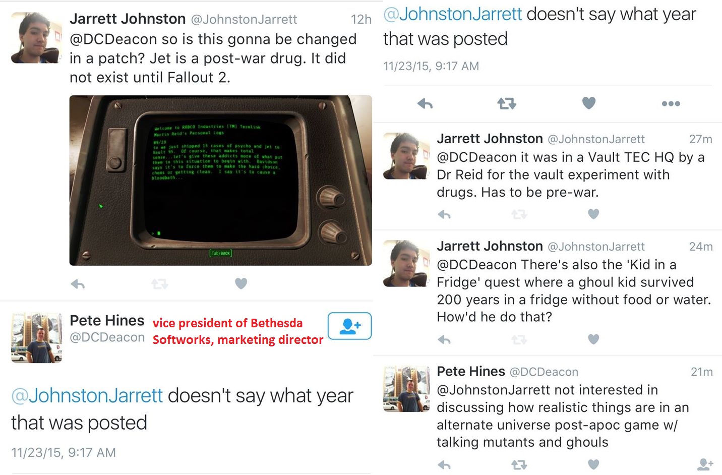 >>563294169The fallout autists deserved it for asking a marketing goon about the writing. He's technically not even in the same company.