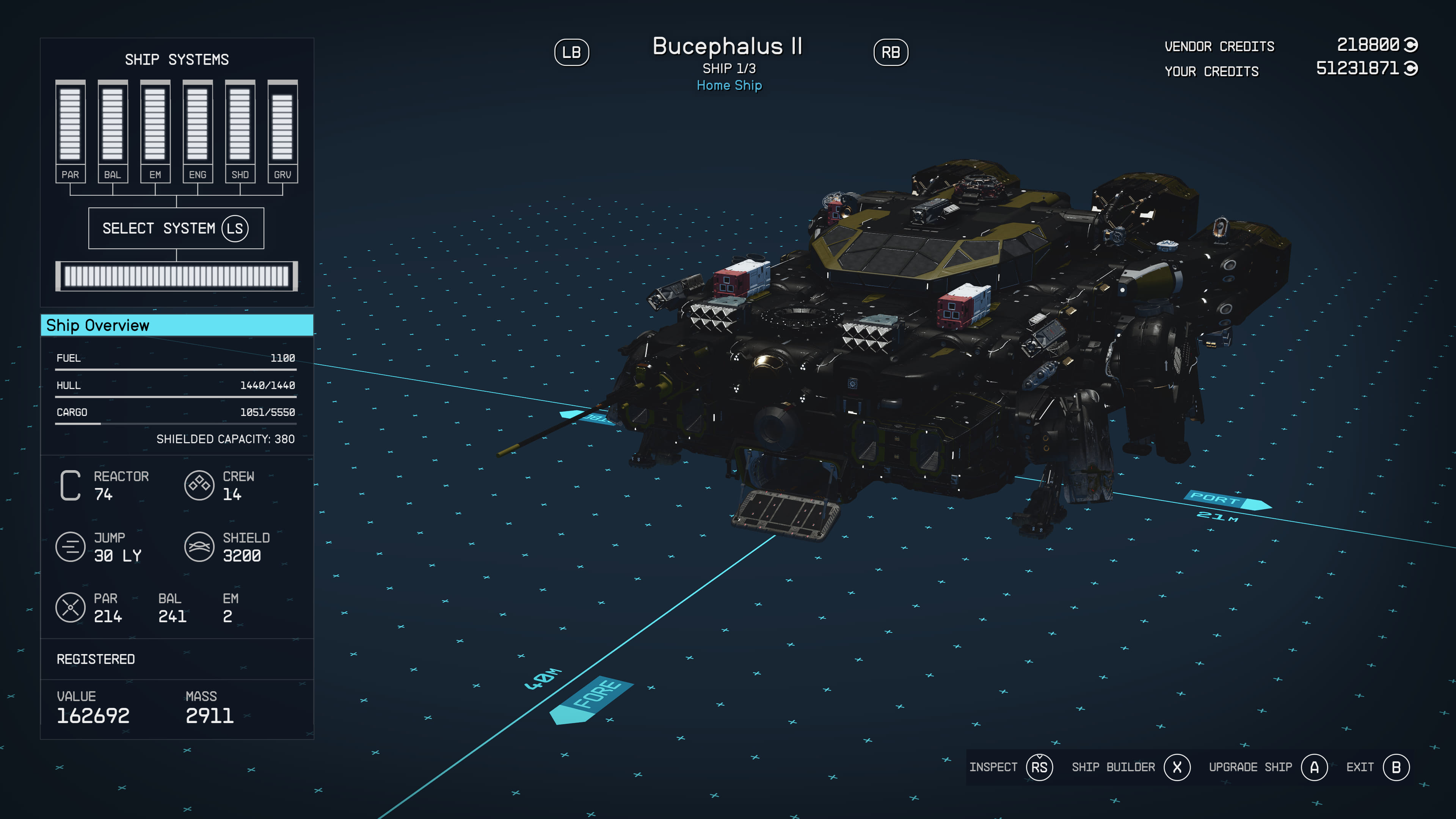 here is my second iteration of the Bucephalus, i think the size restrictions are way too small for the new parts. i think i will make my third iteration once i get enough money for the falkland systems mod.