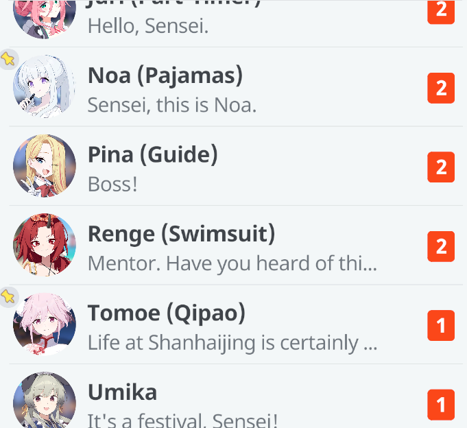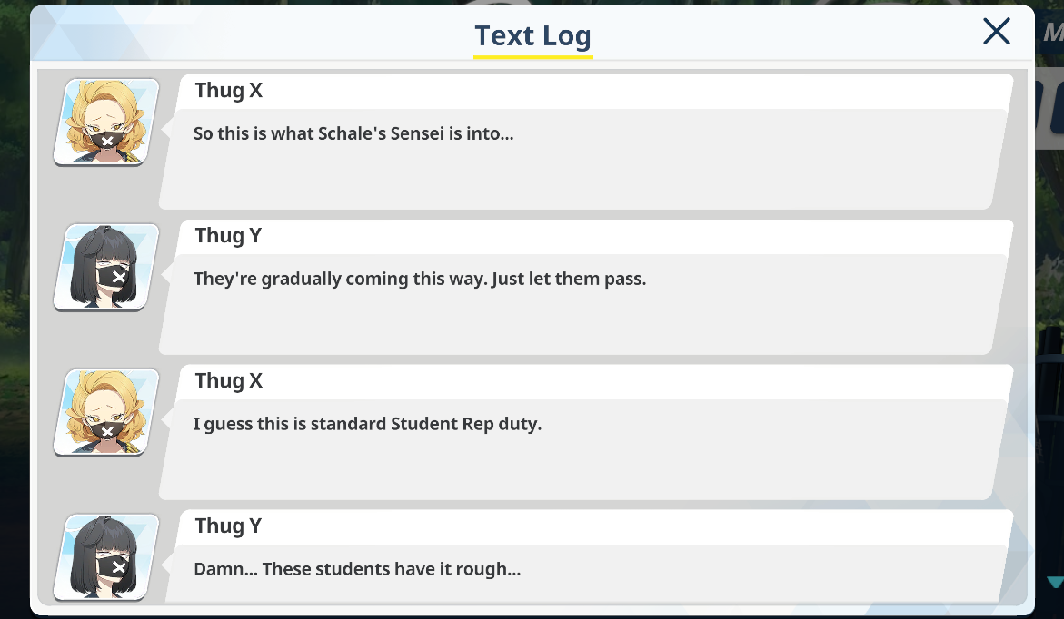 >>563291609Not the schizo, but I wouldn't mind very brief apperances / mentions of other students.Unfortunately it's hard to even tell if that is his "core point" when the examples he's often used are examples that feel far less like a cameo and more like group story material.I don't think it's worth the risk of them doing it badly though. What I'd want in an ideal world isn't worth taking the safety rails off when old writing has proven how bad things can be.Seeing something like Chiaki dropping Ibuki off at Schale at the start of Ibuki's momos would be something I'd be fine with for example, but I wouldn't want Chiaki around for more than a line or two of dialogue.