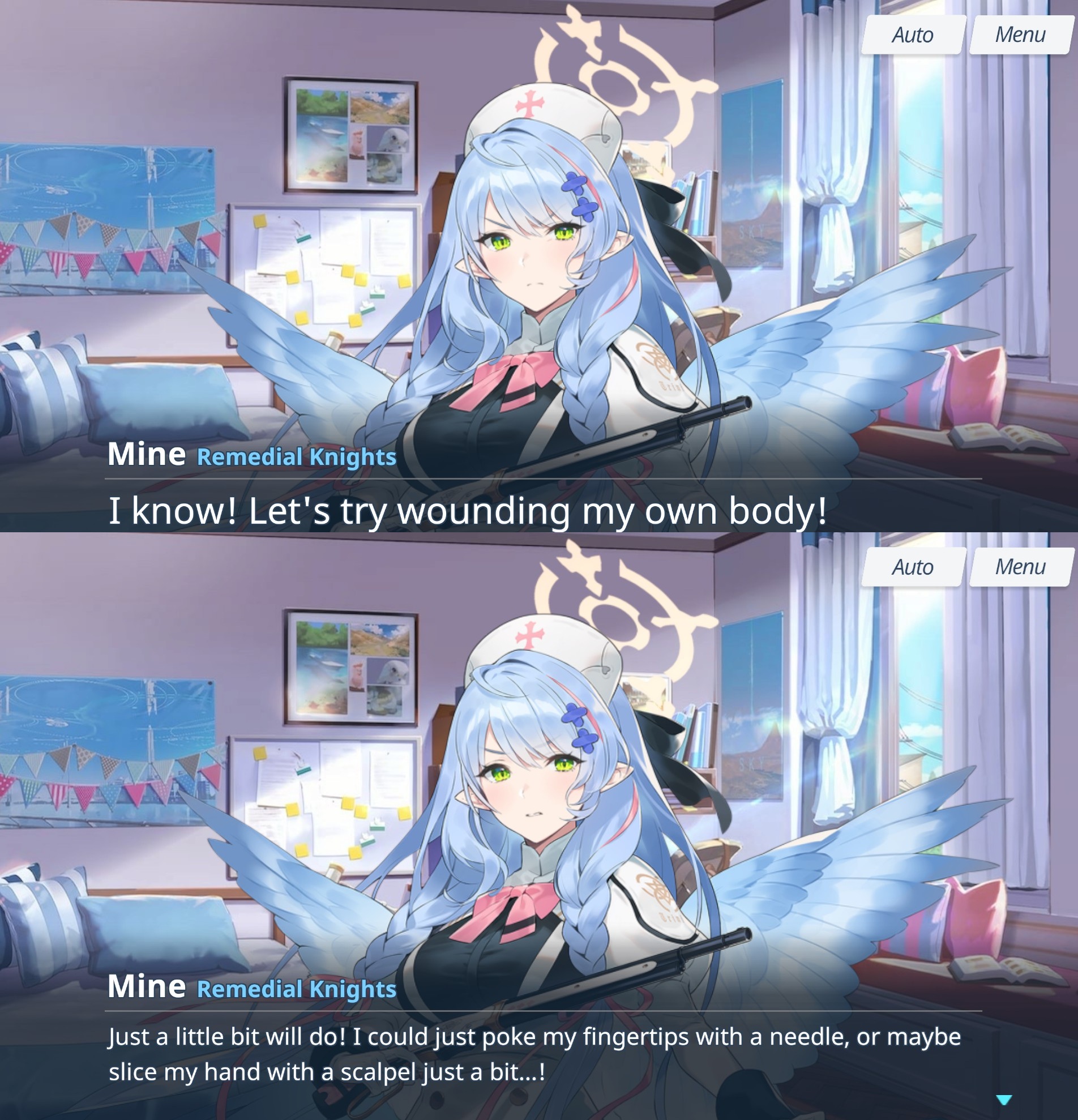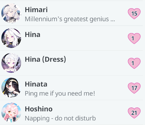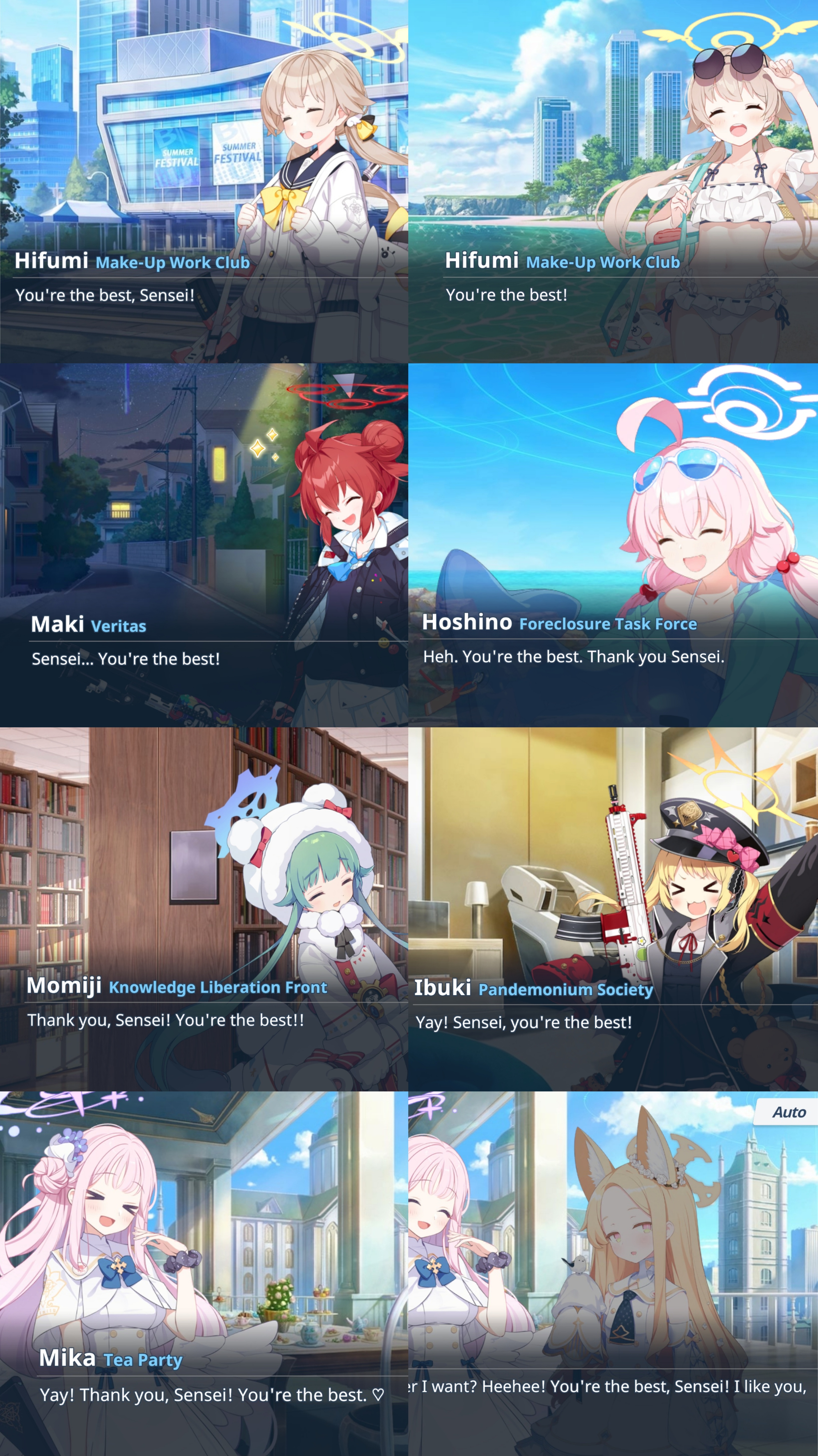 >>563289036>I would like momotalks to be ministories>I don't want to read ministories, no no that's not what I want, I just want to ruin what momotalks are and fundamentally make them into something else entirely, because "bond story that focuses on a girls relationship with sensei" that is effectively their love scene needs to be about other characters so the other characters can take over the scene and it becomes indistinguishable from any other part of the game.>The only part of the game that actually focuses on sensei and the girls bond individually and doesn't make it a group thing, I need to kill that because I don't realize that the thing I'm talking about already exists and it's called ministories and group stories which I don't want to read at all, I just want to ruin what bond stories are because I fundamentally don't get itStellar take that you've said a few times already