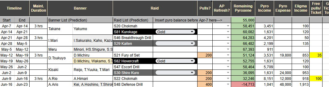 Previous Thread: >>563250016>Guides, Resources and useful links:https://rentry.org/bagguides>/bag/Circles/Clubs/Friends:https://rentry.org/holdingthebag>4koma, Manga, Side Content, PVs & Shortshttps://rentry.org/bacontent>>(JP) – JST>Banners:>4/1 After Maint – 4/15 10:59Akane (School)Seia (Limited)Asuna (School – Limited)Karin (School – Welfare)Toki (Bunny)>News:Patch notes: https://bluearchive.jp/news/newsJump/645>Events:Code: BOX - The Shadow Approaching Millennium – 4/1 After Maint – 4/15 10:59Balancing Schale's Books with the General Student Council – 4/15 11:00 – 4/21 10:59>Content:Grand Assault: Perorodzilla (Field – Torment w/Heavy & Special Armor) – 4/8 11:00 – 4/15 3:59Limit Break Assault: Tiphareth (Indoor – w/Elastic Armor) – 3/19 11:00 – 4/21 3:592x Hard – 4/8 4:00 – 4/15 3:592x Commissions/Bounty – 4/15 4:00 – 4/21 3:59>>(GLOBAL) – UTC>Banners:>4/7 After Maint – 4/21 1:59TakaneYakumoMeru, MomijiMinoriShigure (Hot Spring)Serika (Swimsuit)>News:Patch notes: https://forum.nexon.com/bluearchive-en/board_view?thread=3415801>Events:Winter Sky's Renaissance: Thesis on Cultural Exchange – 4/7 After Maint – 4/21 1:59My Office: https://bluearchive.nexon.com/user/myoffice>Content:Total Assault: Kurokage (Urban) – 4/7 After Maint – 4/13 18:59Joint Firing Drill (Breakthrough) – 4/14 2:00 – 4/20 18:59Limit Break Assault: Chokmah (Field – w/Heavy Armor) – 4/8 2:00 – 4/27 18:592x Bounty – 4/6 19:00 – 4/13 18:592x Account EXP – 4/10 19:00 – 4/12 18:592x Normal/Hard – 4/13 19:00 – 4/20 18:592x Account EXP – 4/17 19:00 – 4/19 18:592x Lesson/Scrimmage – 4/20 19:00 – 4/27 18:592x Bounty – 4/27 19:00 – 5/4 18:59