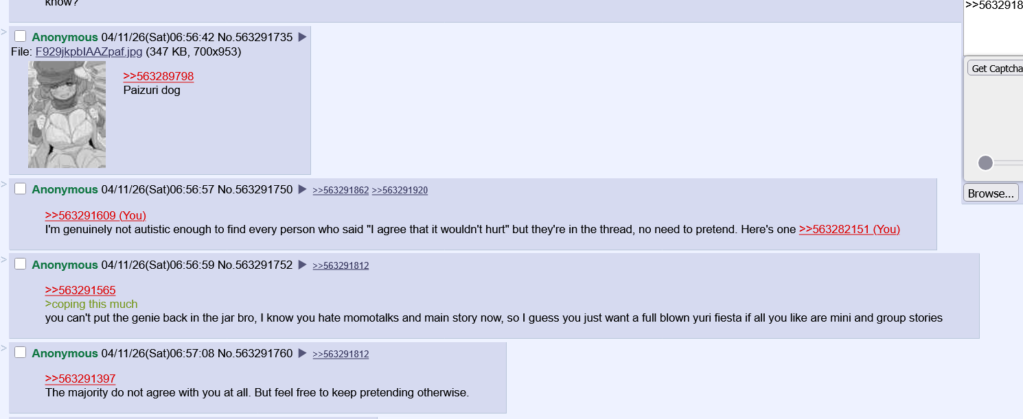 >>563291609I'm genuinely not autistic enough to find every person who said "I agree that it wouldn't hurt" but they're in the thread, no need to pretend. Here's one >>563282151