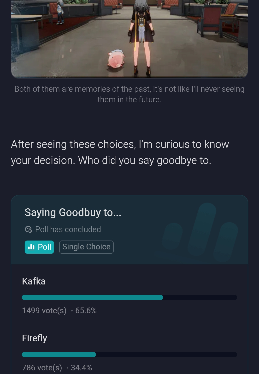 It's okay if you want to choose Cyrene's letter if you want to. Because Herta understands and wouldn't want you to be sad.