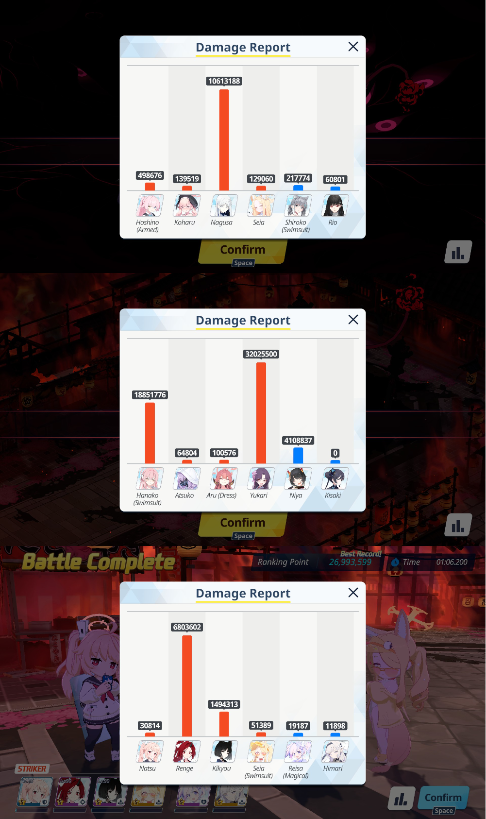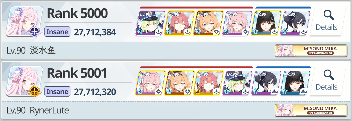 >>563329535I can't say for sure because I haven't tried the iMari clear (I don't have her) but the mReisa team (same one as the other anon you quoted but with cHare instead of iMari) is extremely consistent for me, I can get 39,97X every single try and 40M most of the time