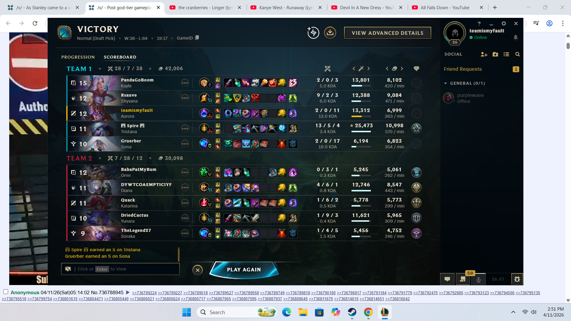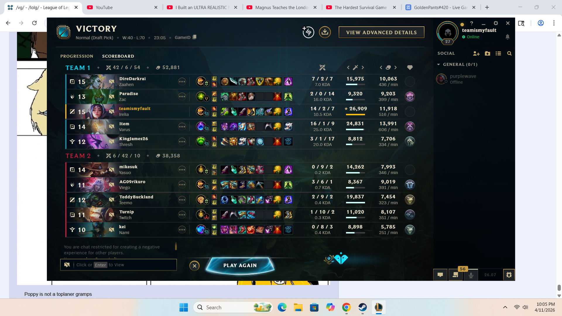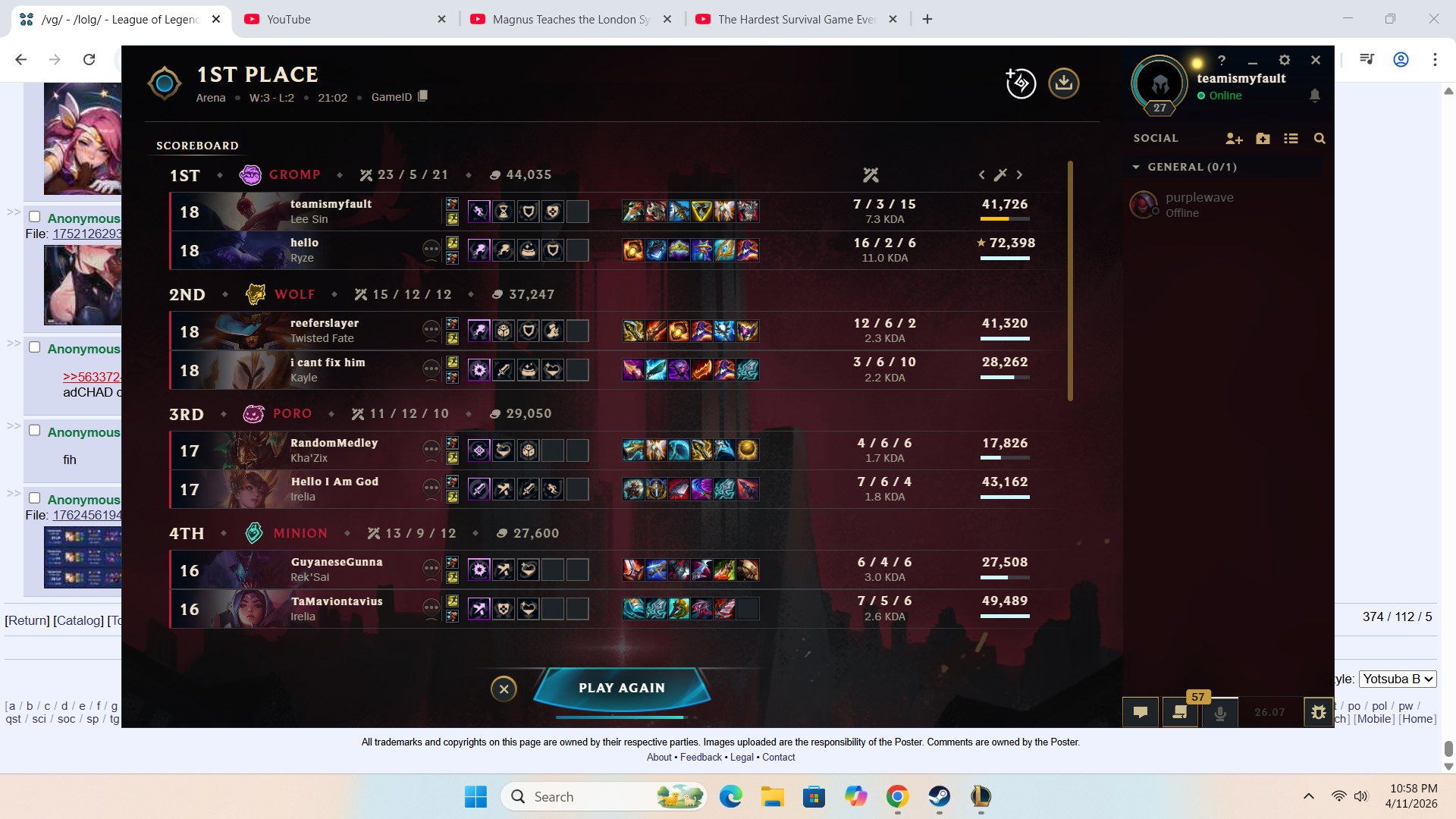 my full late game team comp lost a 40min game