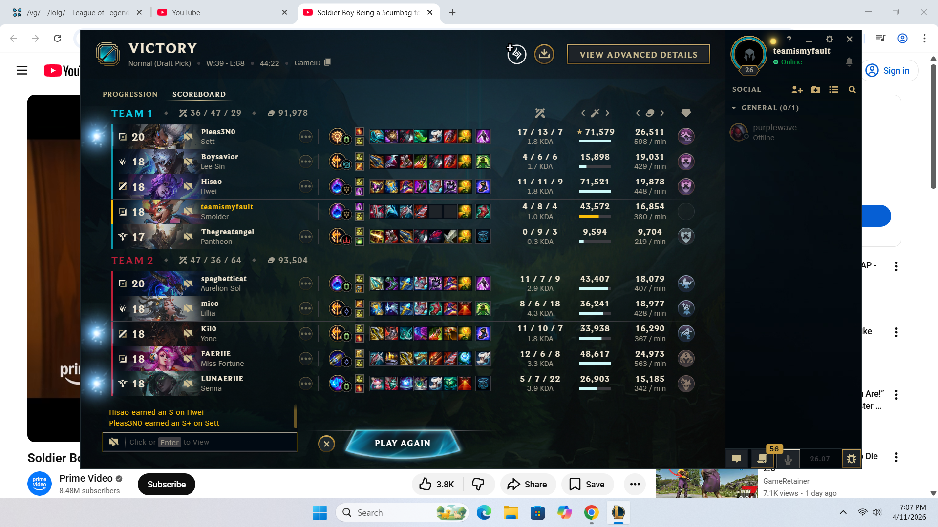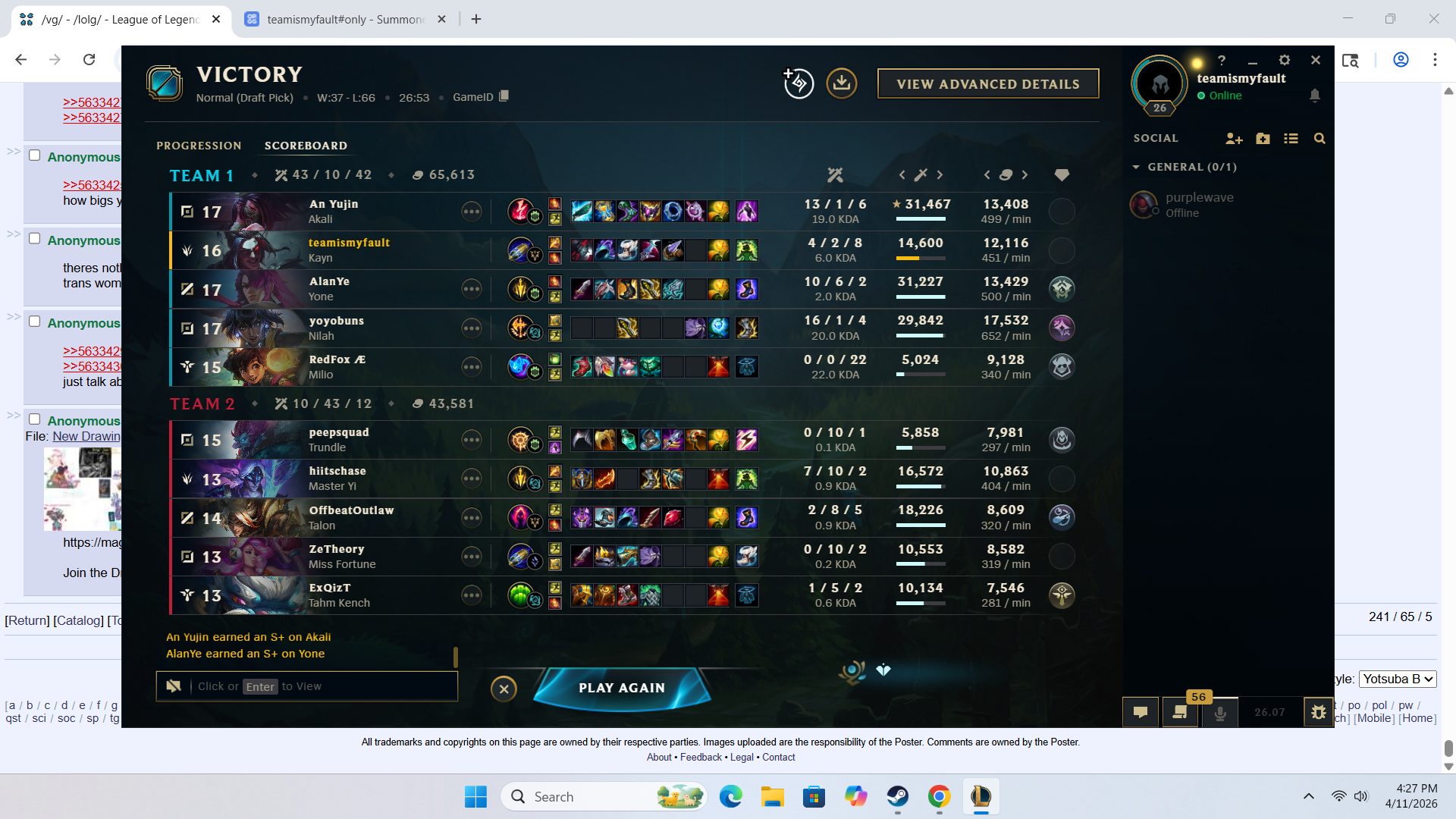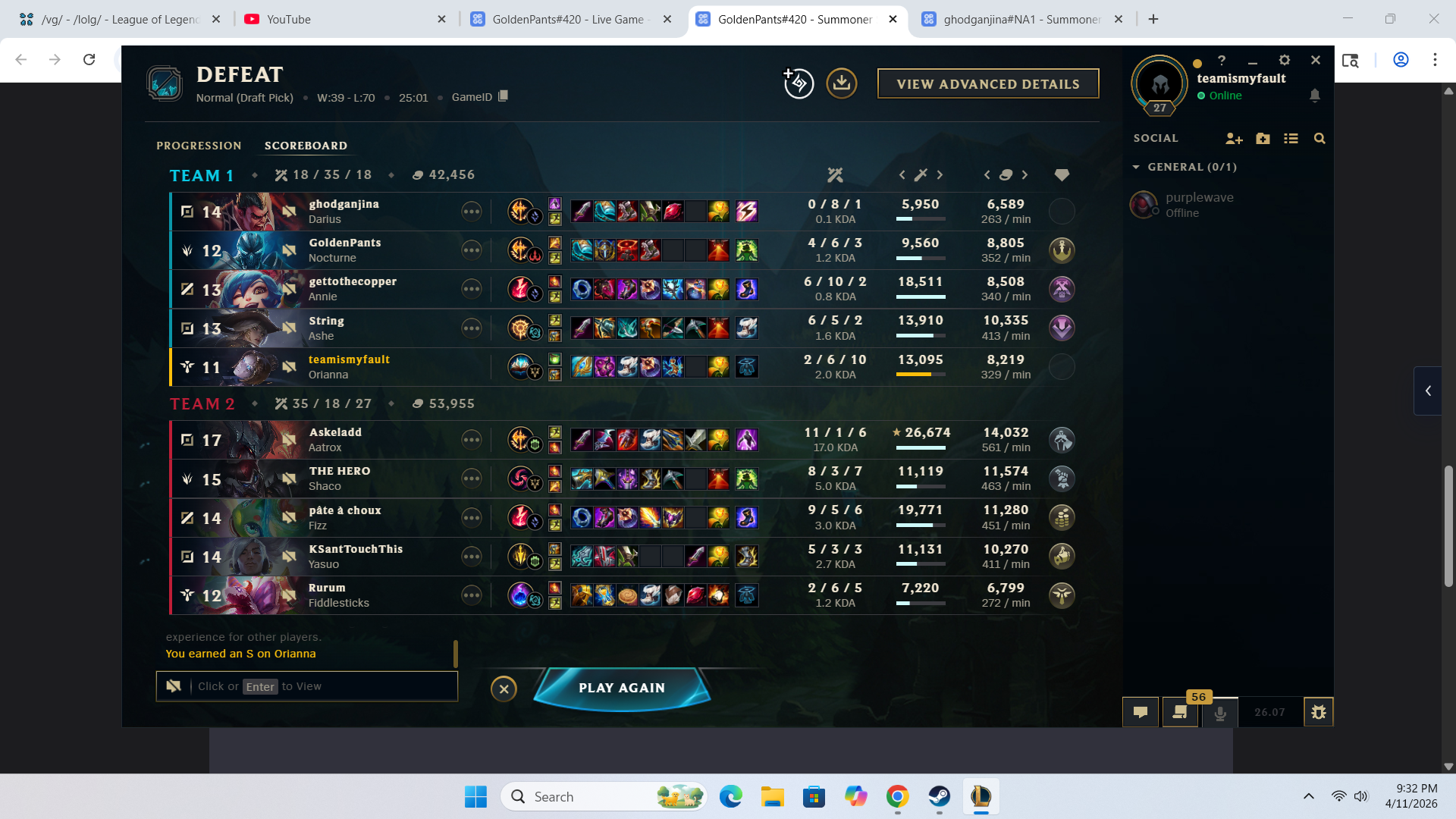 my full late game team comp lost a 40min game