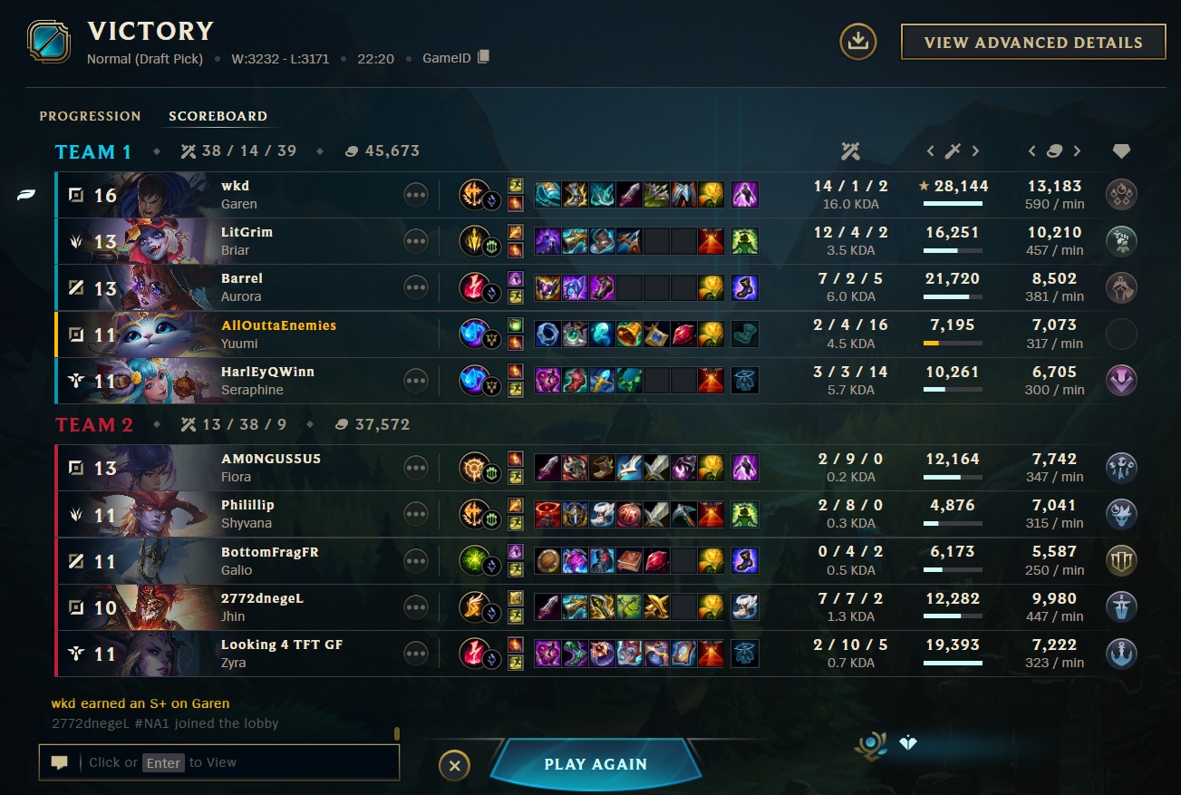 Previous: >>563220456 >Official Wiki, Patch Notes and PBEhttps://wiki.leagueoflegends.com/en-us/ >Builds/Account Statshttps://u.gg/https://www.op.gg/https://lolalytics.com/ >Model Viewerhttps://www.modelviewer.lol /lolg/ OP pastebinhttps://pastebin.com/8xZvBfnZ