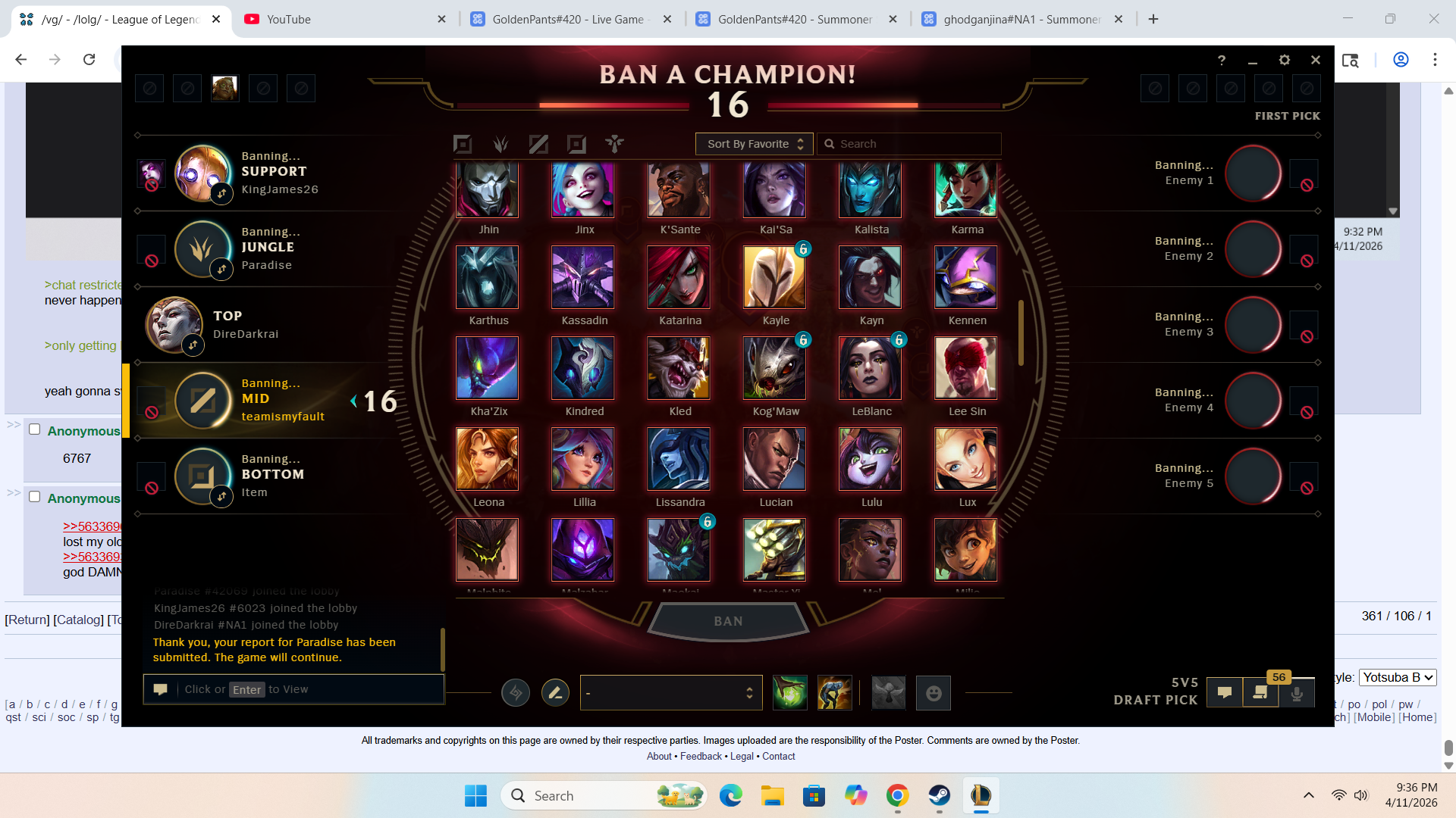 That guy getting deranked and banned from LoL has to be the most good thing this awful general has seen this year so far.