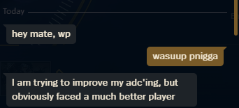 >>563391119"HEY WP GETTING CARRIED THIS GAME! ^__^ 1-11-1 SCORELINE LOOKING DOPE HOLY! GOOD THING WEEK ADC ROLE GOT THEIR WEEK CRIT ITEMS HITLERBUFFED THIS PHREAK SEASON!"