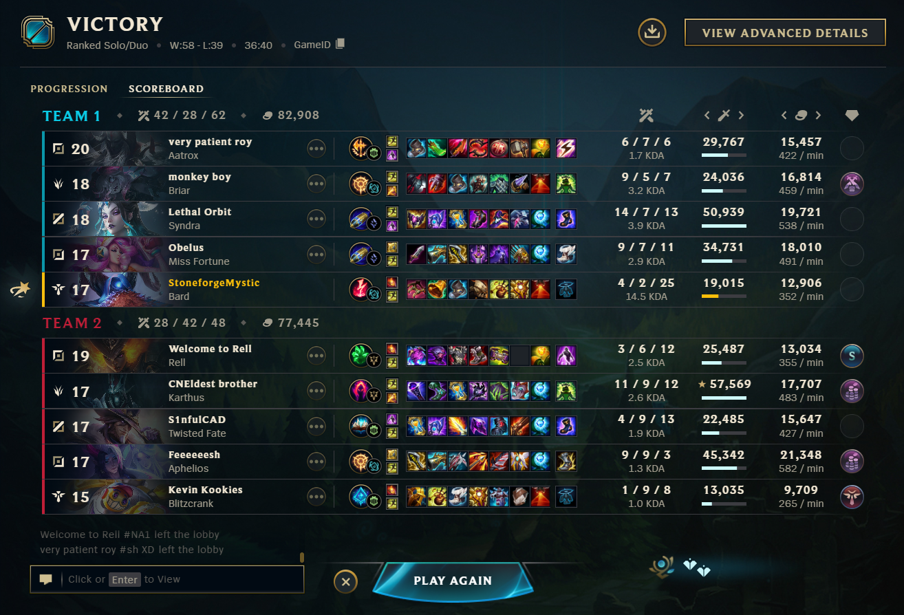 my full late game team comp lost a 40min game