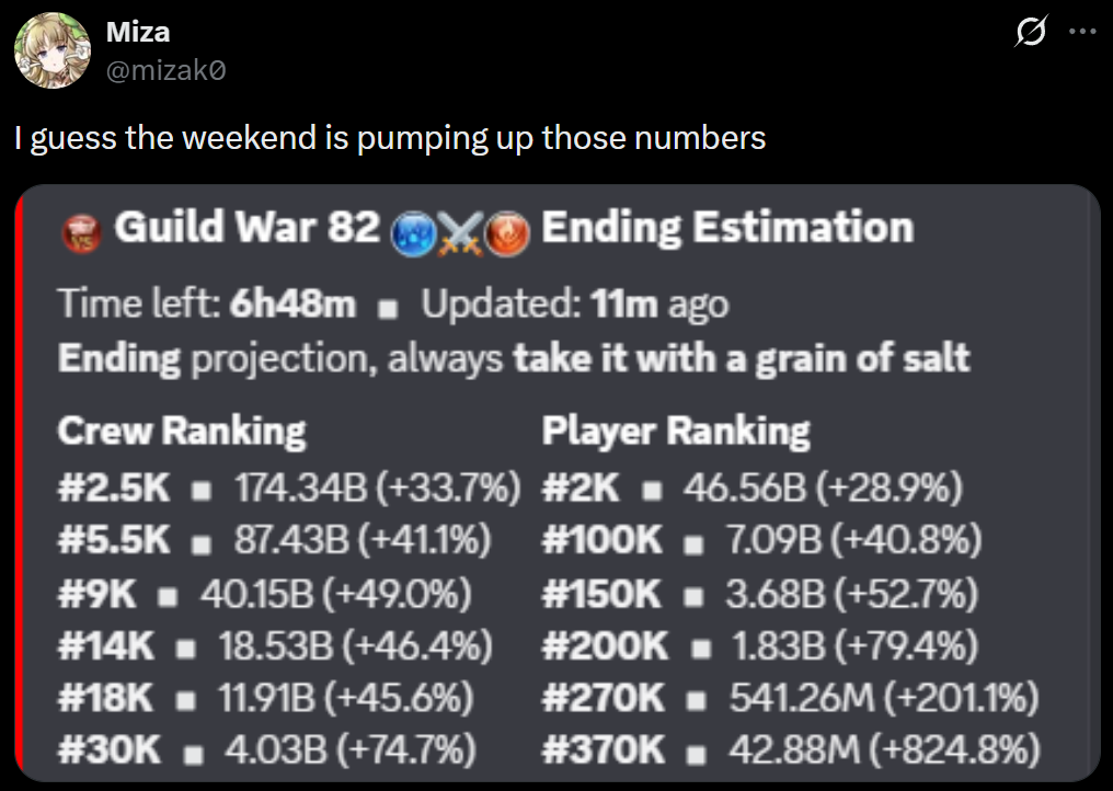 Why are the numbers of this GW so high?My individual rank is fine but my crew is very far from 2.5k while also breaking our records by 30b.