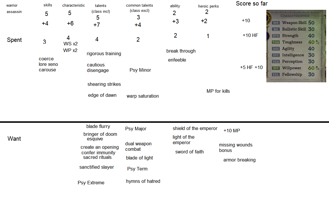 Alright I've completed the build for Heinrix, this one is preliminary unless I find out something else about psyker and assassin mechanics that I didn't realise. But this should be the LAST build I make this time.