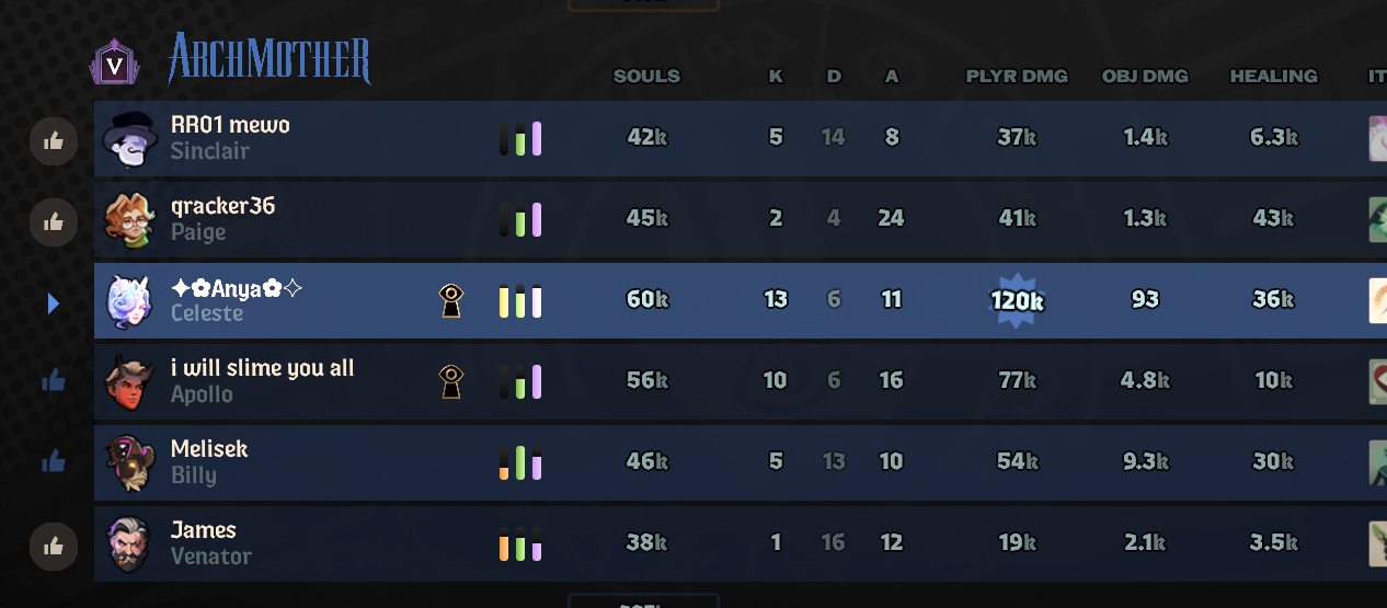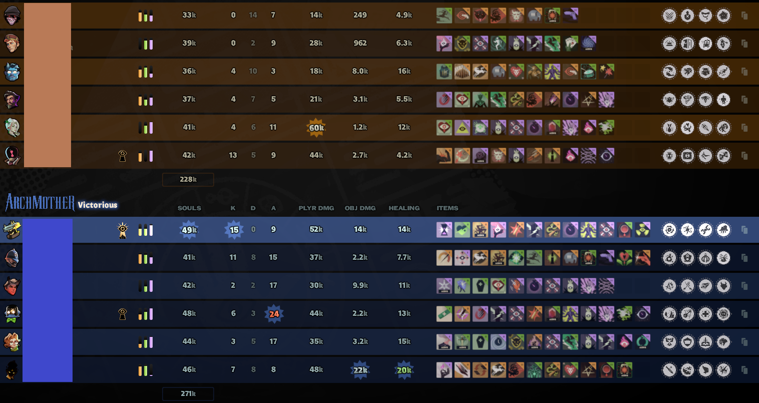 >Be Mina>4/1 in lane 1k souls advantage and ganked sidelane for help>Midgame comes>Team at our side jungling instead of pusing objectives (we are 10k ahead)>30mins on clock 15/5 trying my hardest to 2v1 enemy team for walkers>45 mins 18/10 no sucess>We lose without a single walker pushed and my team is still mouthbreathing on our side of the mapMina can't win games alone, that character sucks ass.You are the squishiest bitch around and can only dish damage through ults and being pointblank.. Sure she is really good at escaping and 1v1ing but man after 30mins everyone gets so tanky and anything that touches you instantly deletes your existence. FUCK EMISSARY LOBBIES DUDE NO ONE DOES SHIT BUT FARMReposting bc im a fucking idiot