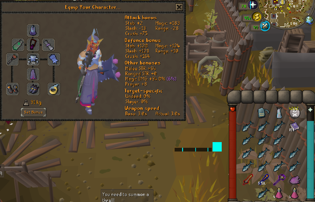 >>563377548>thornschill and versatile, may or may not be that crazy though>"light weapon" (<1kg) spec buildwill be good in the very early game, mediocre in the midgame, and possibly good again depending on whether the last t8 relic has any effect on specs. limited weapon selection and you probably need to pick one of either Asgarnia or Zeah for dog dagger / dclaws>blindbagregret>2h / halberddunno, might be good but i feel like you need a way to consistently freeze / bind stuff and it doesn't work in a lot of situations. will be pretty chill against anything that switches to range / mage at a distance i guess.