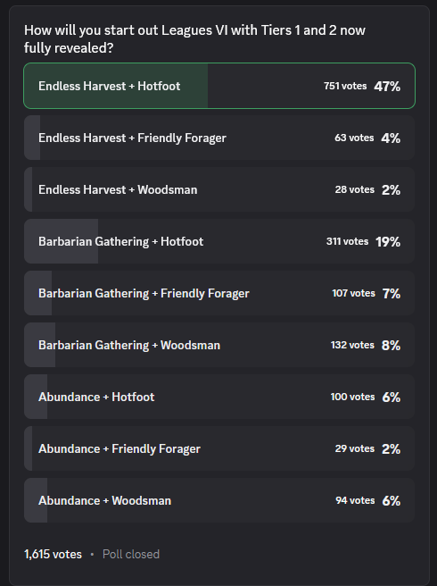 >Endless Harvest + Woodsman 28 votes (2%)