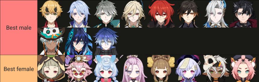 >>563381663raiden, yoimiya and nefer objectively belong in 'good'downgrade shitiori to 'bad'