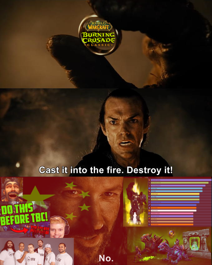 >>563442932it's a fine line, after all the end game enchants, kara 40 gear, legendaries, etc it's like tbc levels of itemization i do like everything from 1-60 dungeons albeit