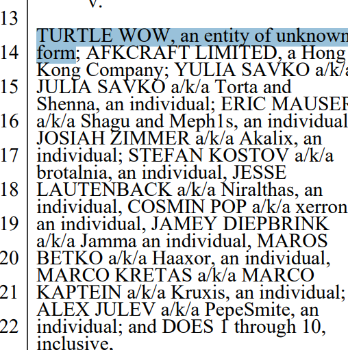 >>563441381AFKcraft was Shenna's piggy bank for Turtle WoW that handled merch, had the bank account and paid everyone's wagesIt represents Turtle WoW in the lawsuit.