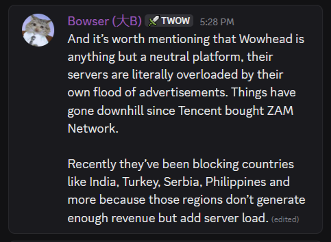 Honestly it just sounds like poorfag cope with people here being against Blizzard getting access to Turtle WoW or running their own classic+ server when they've shown that they can do something with a little more competence after releasing Anniversary and SoD. How people here can be against this is beyond me