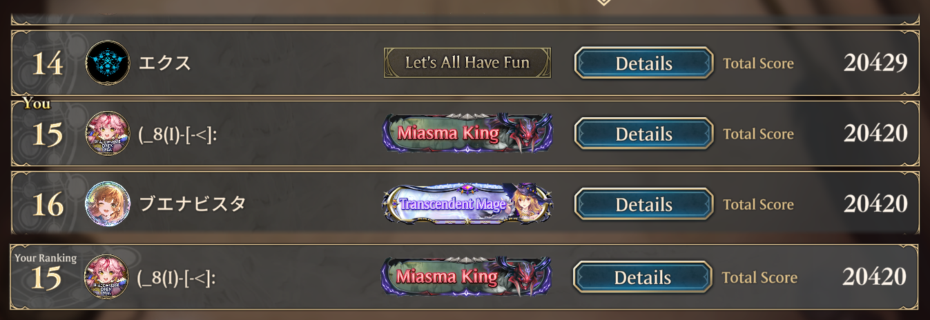 >>563398763i did 4k in the lobby while the tournament was on and won every game except those against crystal rune which i lost all but one ofi'm so fucked now that it has tournament results