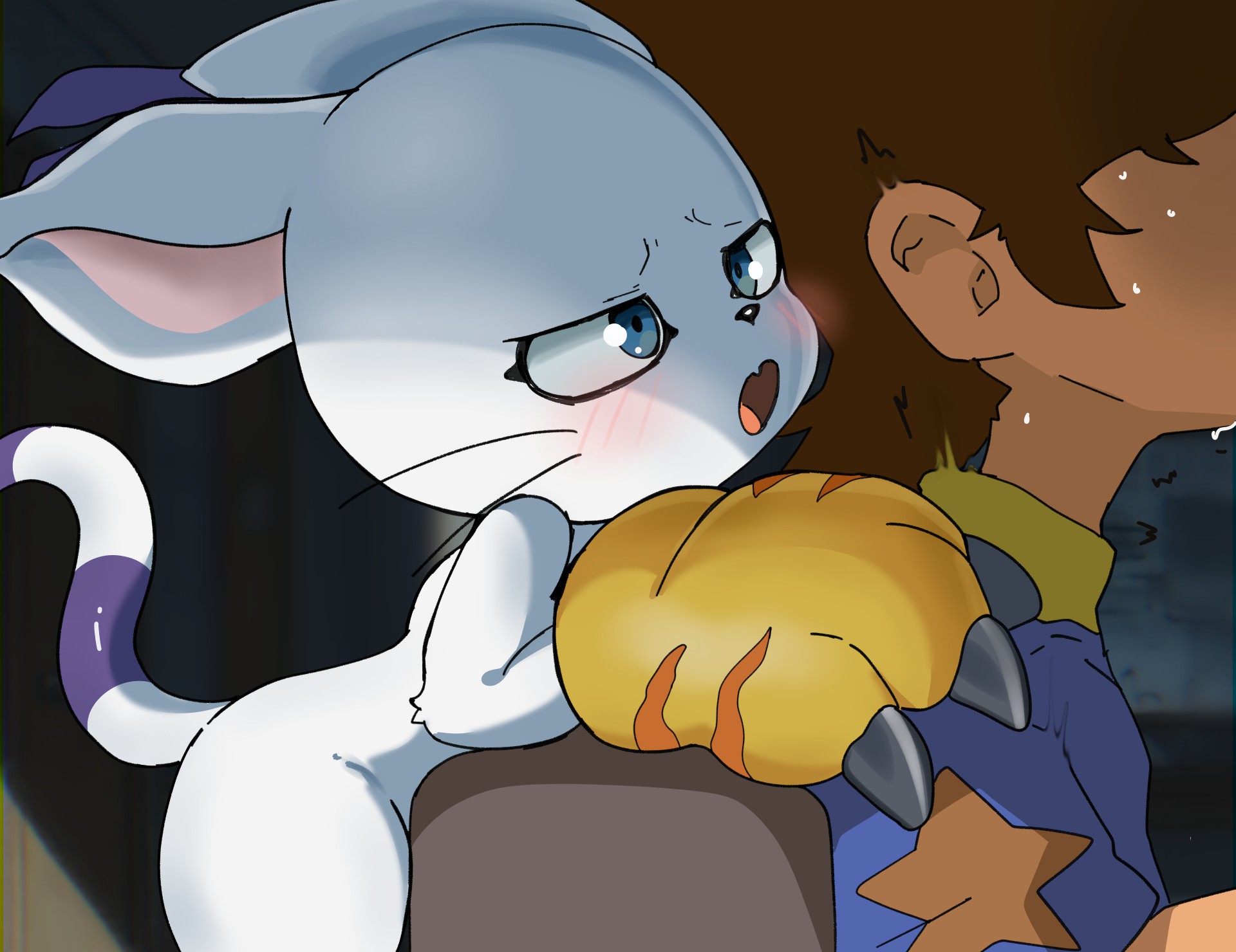 Owners don't necessarily have to be similiar to their Digimon despite what Makoto said.>BlackGaogamon had some yakuza as an owner, who dumped him in the woods. BlackG himself actually hated violence and was just starving>Pandamon's actual owner was in a similiar boat, since Pandamon got dumped>Monodramon is pretty chill in comparisson to Soda Pop, who is a pain in the ass even after mellowing out.