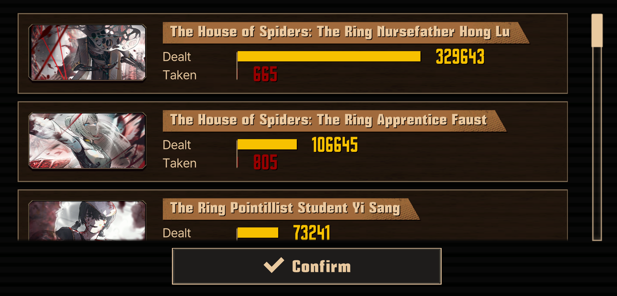 >>563439505Depends on the situation. Yi Sang can be lower if he never staggers his targets or gets unlucky with his weapon choices. It's absolutely brutal against a single target.By Comparison Hong's is only good against group targets and the damage drops off if he lacked charge when it fired off or if he didn't get all his targets (though he does get attack weight excess mods to make up for it).See: >>563424691