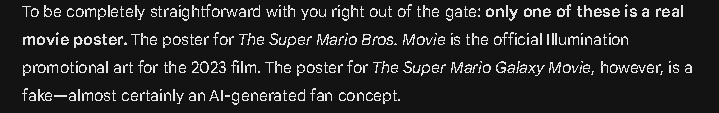 >>563422939>The Super Mario Galaxy Movie Sequel is outwtf is this?The movie out now is the Super Mario Galaxy MovieIt is the sequel to the Super Mario Bros MovieIt is not a sequel to the Super Mario Galaxy games, nor is it a sequel to itself.If you want to use the full title and note it is a sequel, say something like "The Movie Sequel, The Super Mario Galaxy Movie is out"If that is too many characters, cut Mario Kart World from the announcement list, it's been out nearly a year at this point.