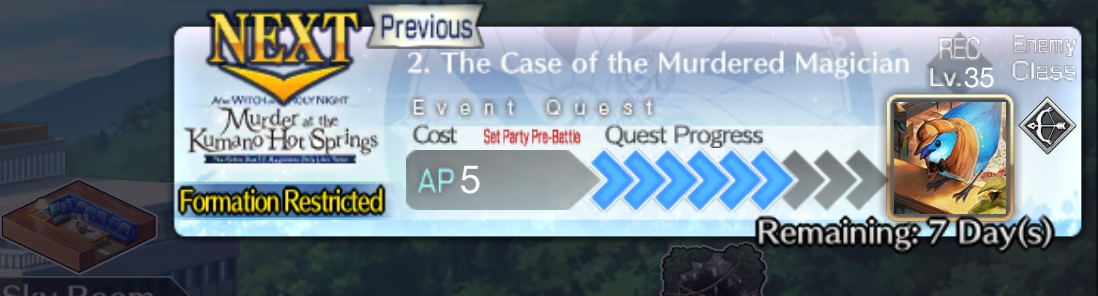 Previous: >>563262736> [Event] Witch on the Holy Night × Fate/Grand Order Collaboration Event "After Witch on the Holy Night/Murder at the Kumano Hot Springs - The Robin Saw It! Magicians Only Live Twice"https://webview.fate-go.us/2026/0324_witch_night/2026-03-30 01:00 - 04-19 20:59 PDT>[Summon] Witch on the Holy Night Collaboration Event Aozaki Aoko Pickup Summonhttps://webview.fate-go.us/2026/0329_witch_night_pu1/2026-03-30 01:00 - 04-19 20:59 PDT>[Summon] Kuonji Alice Pickup Summonhttps://webview.fate-go.us/2026/0403_witch_night_pu3/2026-04-03 21:00 - 04-19 20:59 PDT>[Summon] Space Ishtar Pickup Summonhttps://webview.fate-go.us/2026/0331_witch_night_pu2/2026-03-31 21:00 - 04-19 20:59 PDT>[Summon] Free Quest Backup Amor (Caren) Pickup Summonhttps://webview.fate-go.us/2026/0405_witch_night_qbpu/2026-04-05 21:00 - 04-19 20:59 PDT>[Summon] Pickup 4 Summonhttps://webview.fate-go.us/2026/0405_witch_night_pu4/2026-04-05 21:00 - 04-18 20:59 PDT>[Campaign] Spring 2026 New Master Support Campaignhttps://webview.fate-go.us/2026/0319_new_mst_cp/2026-03-22 21:00 - 04-24 20:59 PDT>[News]https://webview.fate-go.us/>[Servant Info]Servant Material Lookup: https://fgosim.github.io/Material/Servant Planner: https://github.com/chaldea-center/chaldeaCoin Calculator: https://fgo-servant-coins.glitch.me/index.htmlRank Up + Interlude Timeline: https://kazemai.github.io/fgo-vz/relate_quest.htmlRate Up Tracker: https://tohnocoding.github.io/fgobanners/>[Mats/Summoning Info]Rateups in FGO JP: https://files.catbox.moe/lf1qmz.pngQuartz for next Summer: https://docs.google.com/spreadsheets/d/1iRH60QpLNvHy9MMDKLJGNSg4s7FsDfdXtJtOUVDj5po/edit?gid=162156045#gid=162156045Drop Rates: https://docs.google.com/spreadsheets/d/1_SlTjrVRTgHgfS7sRqx4CeJMqlz687HdSlYqiW-JvQAFGO Raw Database: https://apps.atlasacademy.io/>[FAQ]https://rentry.org/alter-faq