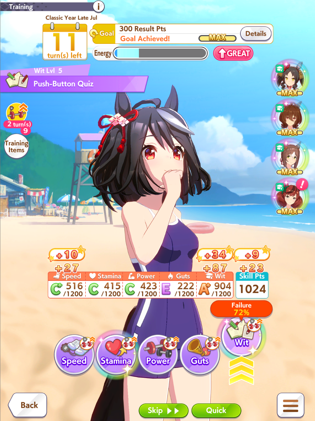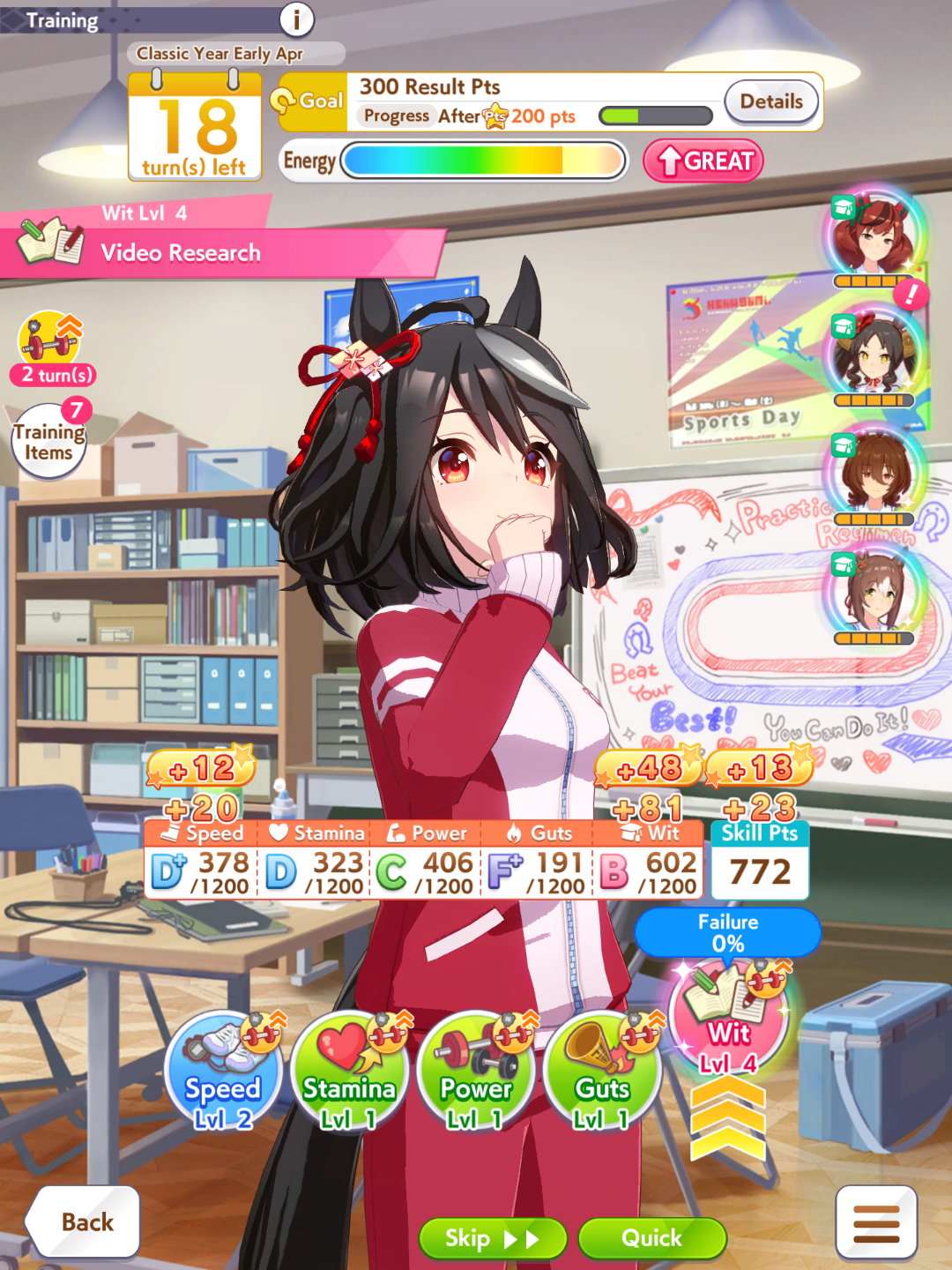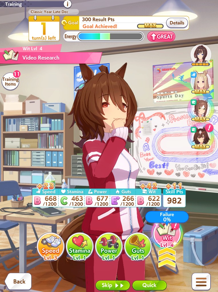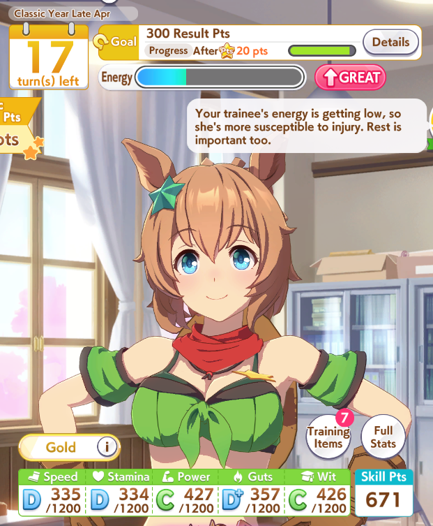 >job debut>2 turns later, fast learner via eventT-this is the run?