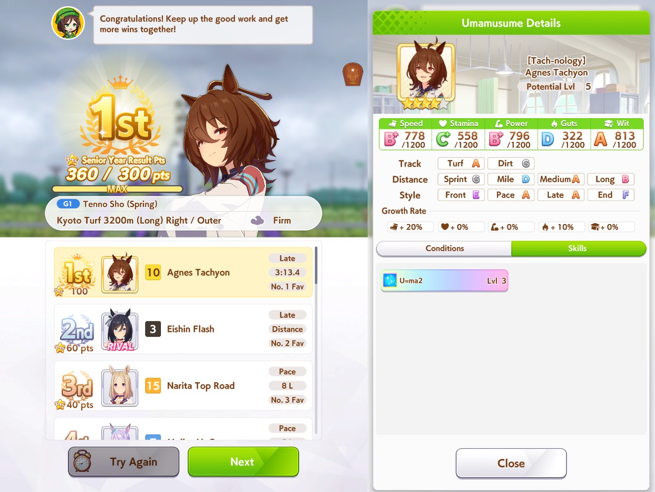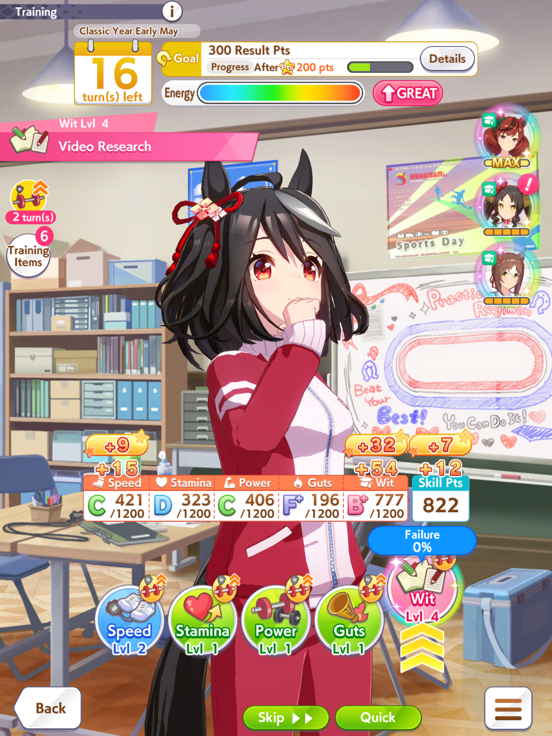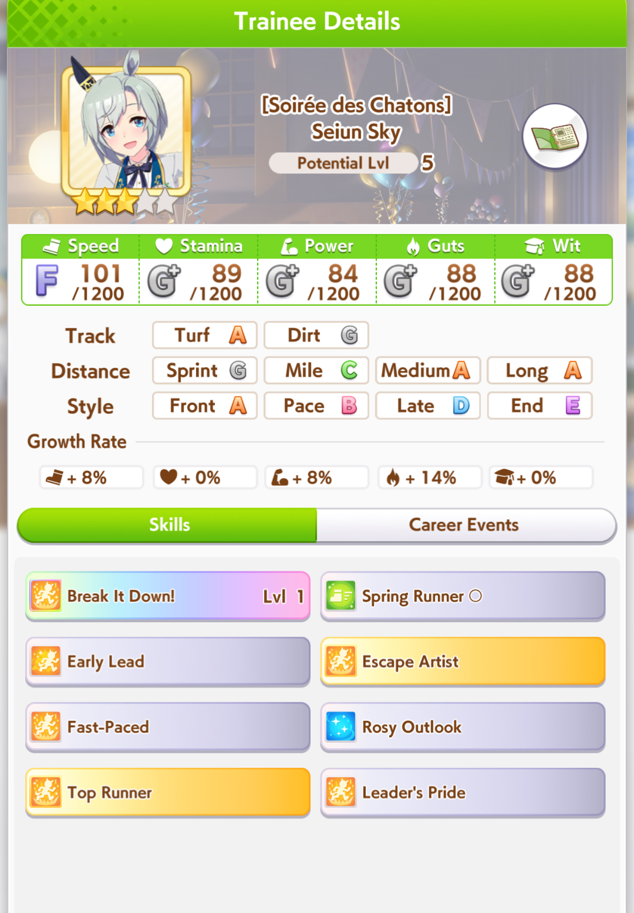 >job debut>2 turns later, fast learner via eventT-this is the run?