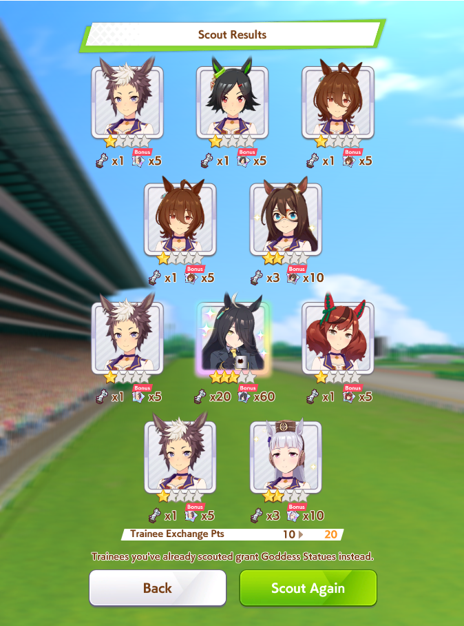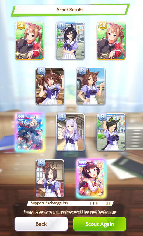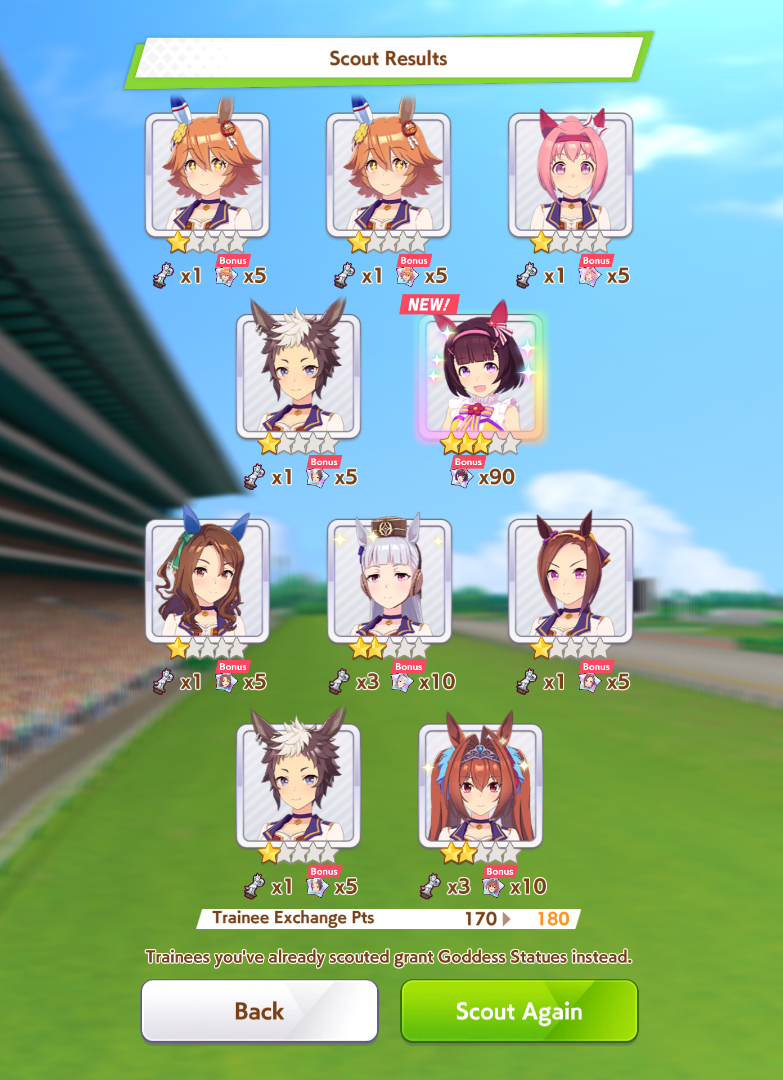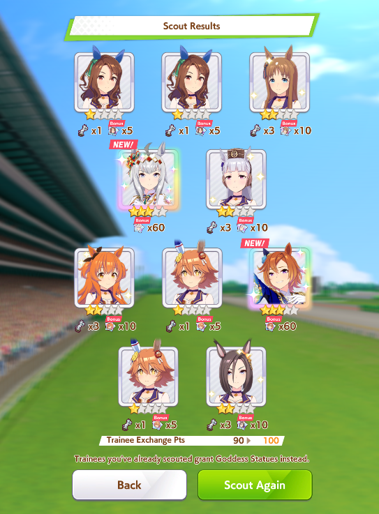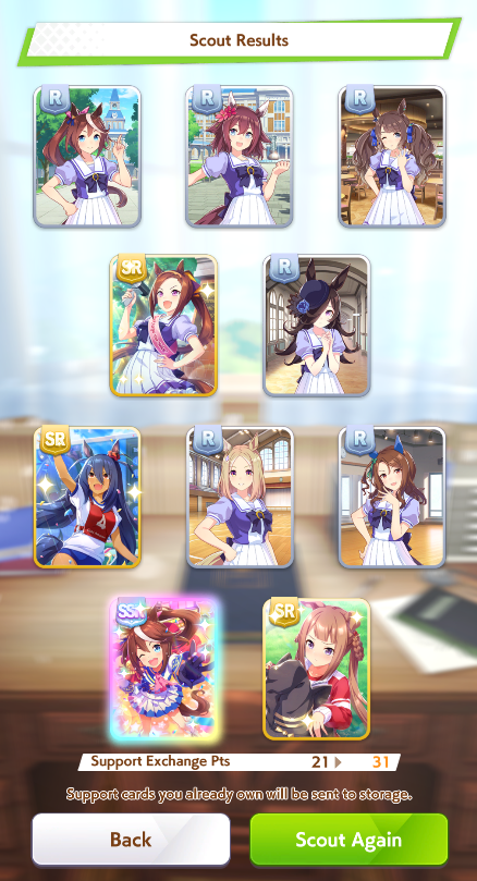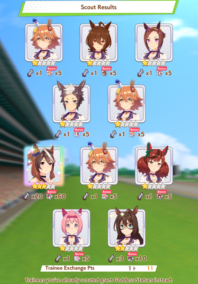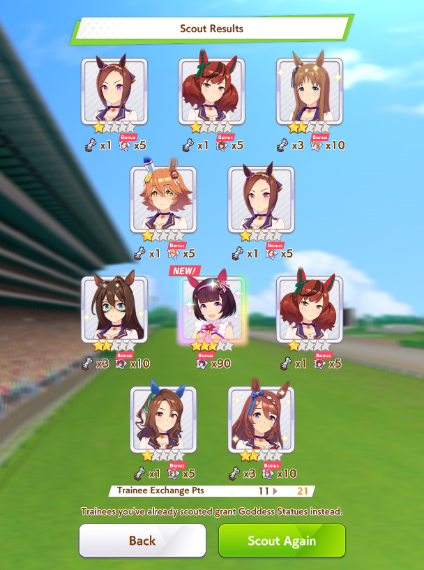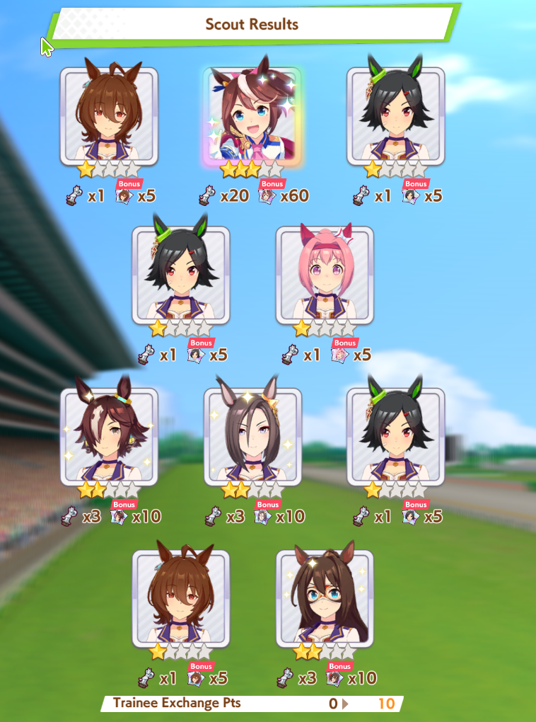 >>563445969200, but I got my oshi Admire Vega, plus Narita Brian, Taishin and Symboli Rudolf who has been avoiding capture all this time. Pretty pleased with that haul.