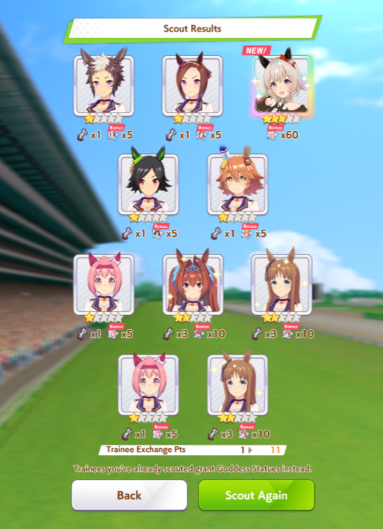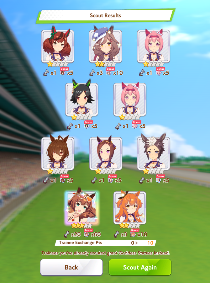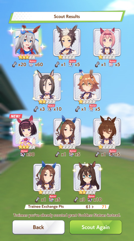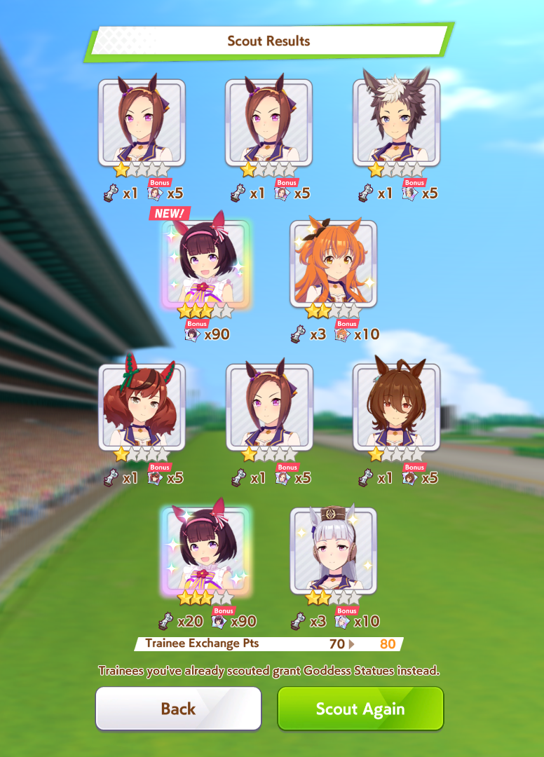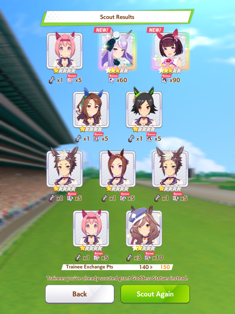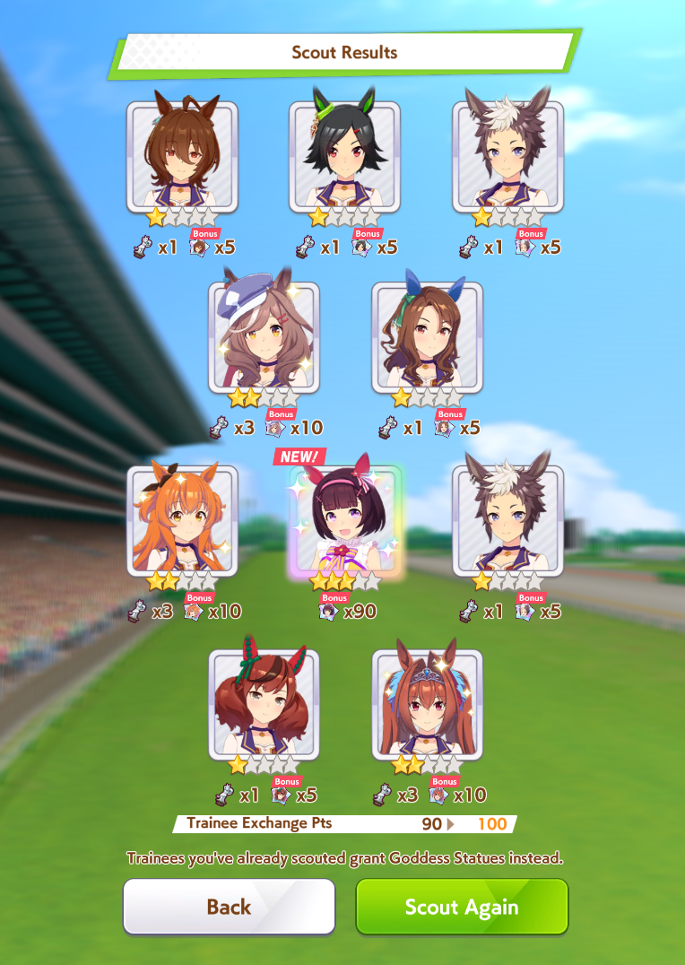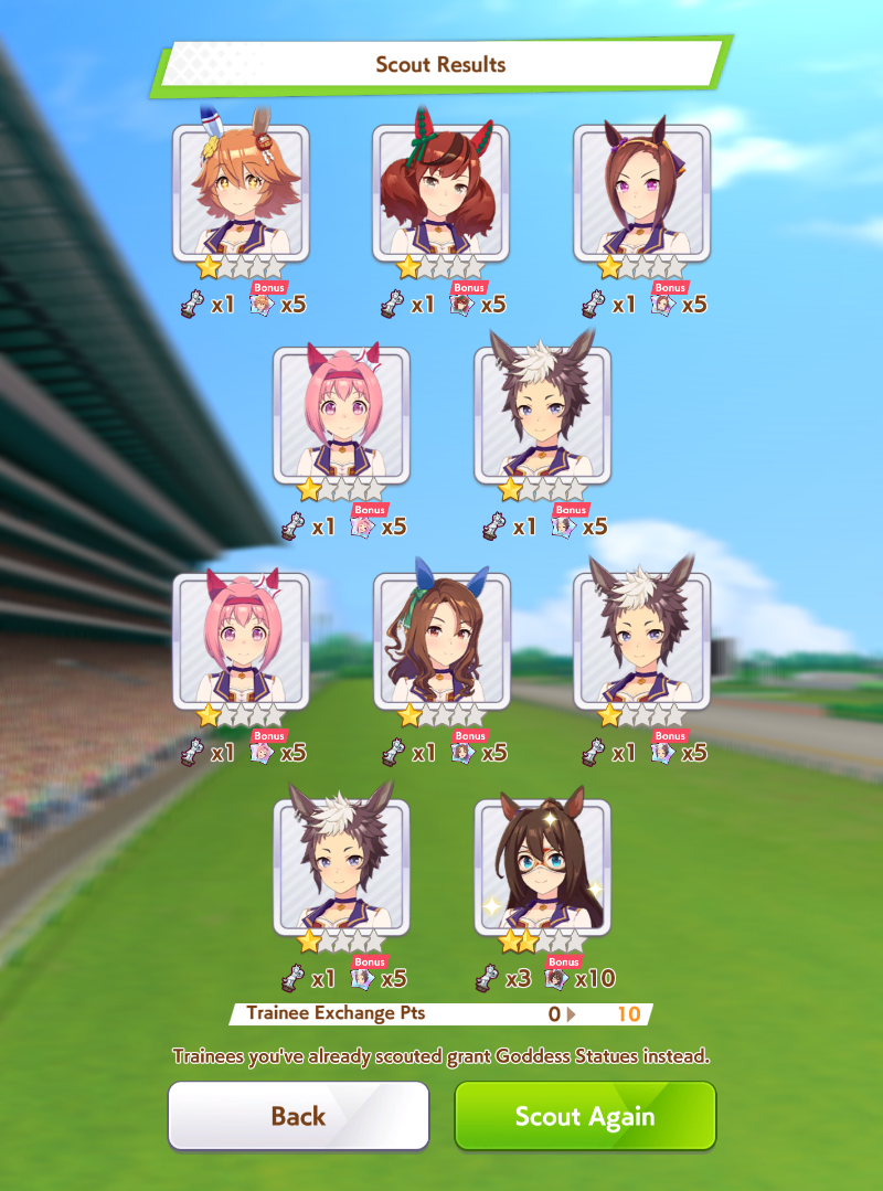 >>563445969200, but I got my oshi Admire Vega, plus Narita Brian, Taishin and Symboli Rudolf who has been avoiding capture all this time. Pretty pleased with that haul.
