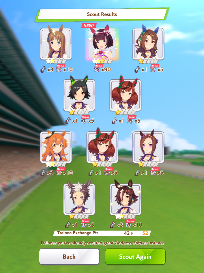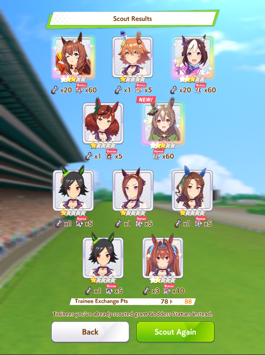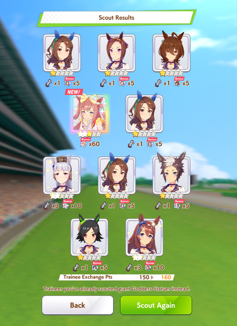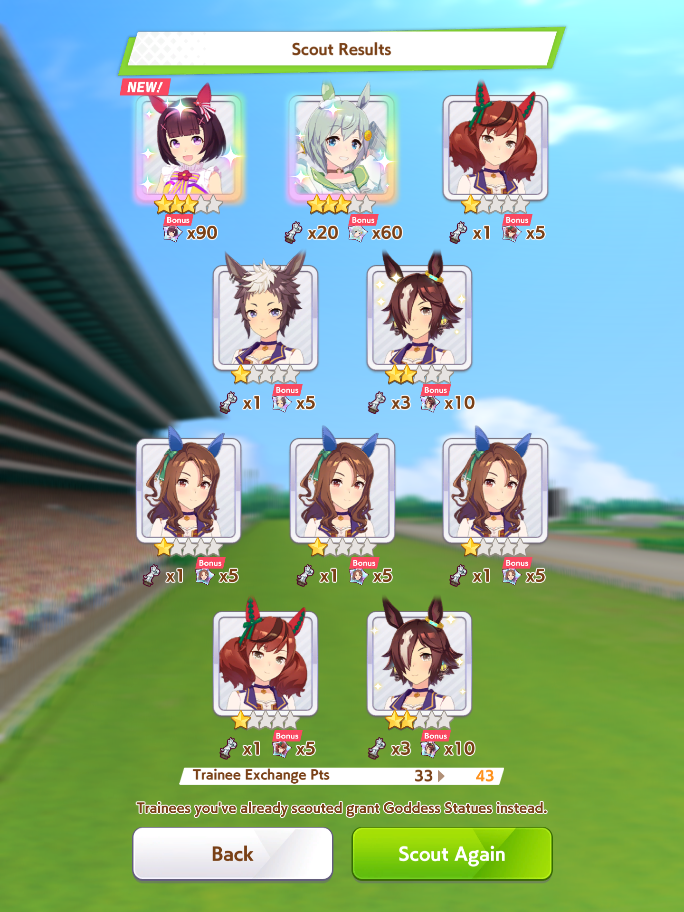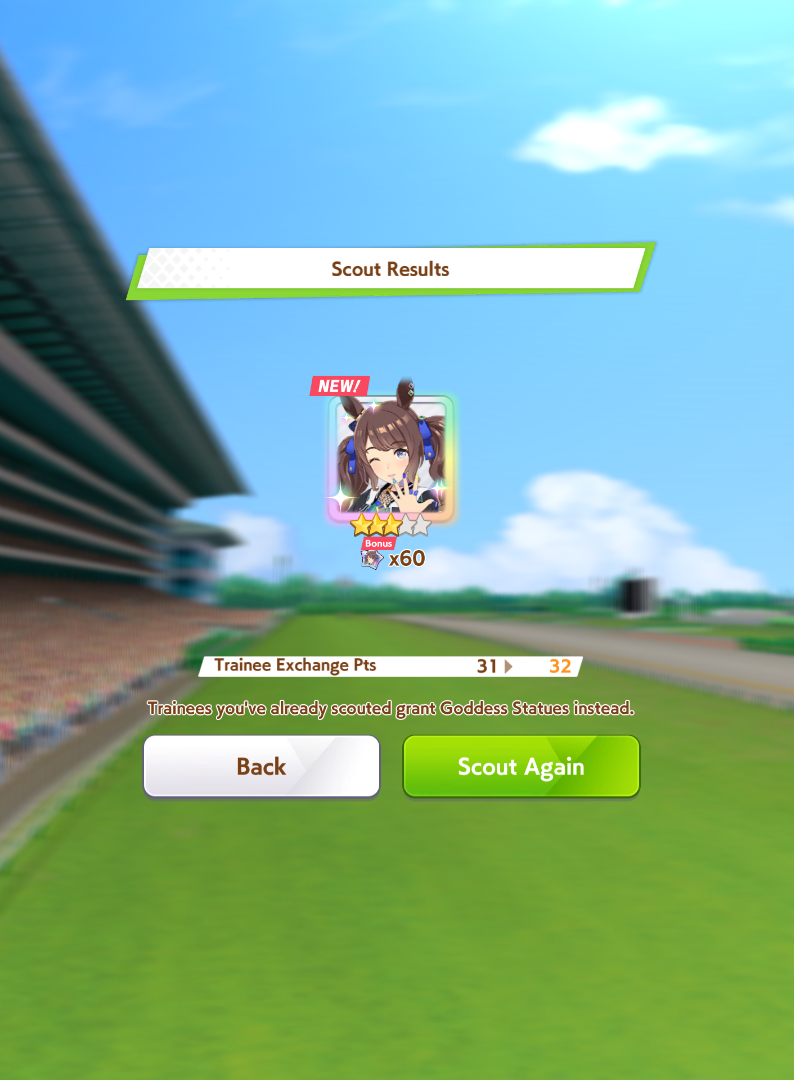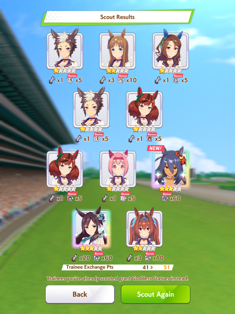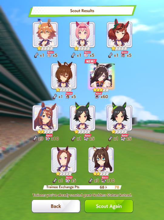 >>563445969200, but I got my oshi Admire Vega, plus Narita Brian, Taishin and Symboli Rudolf who has been avoiding capture all this time. Pretty pleased with that haul.