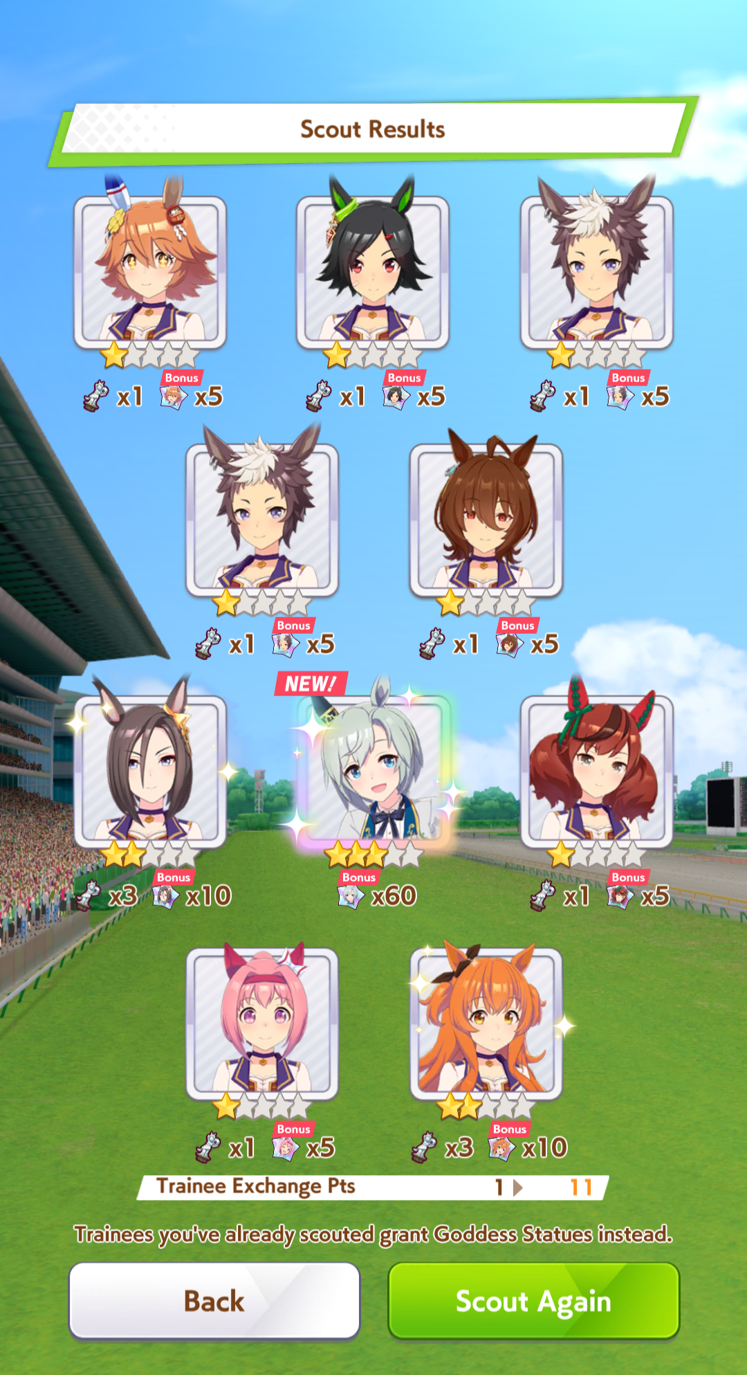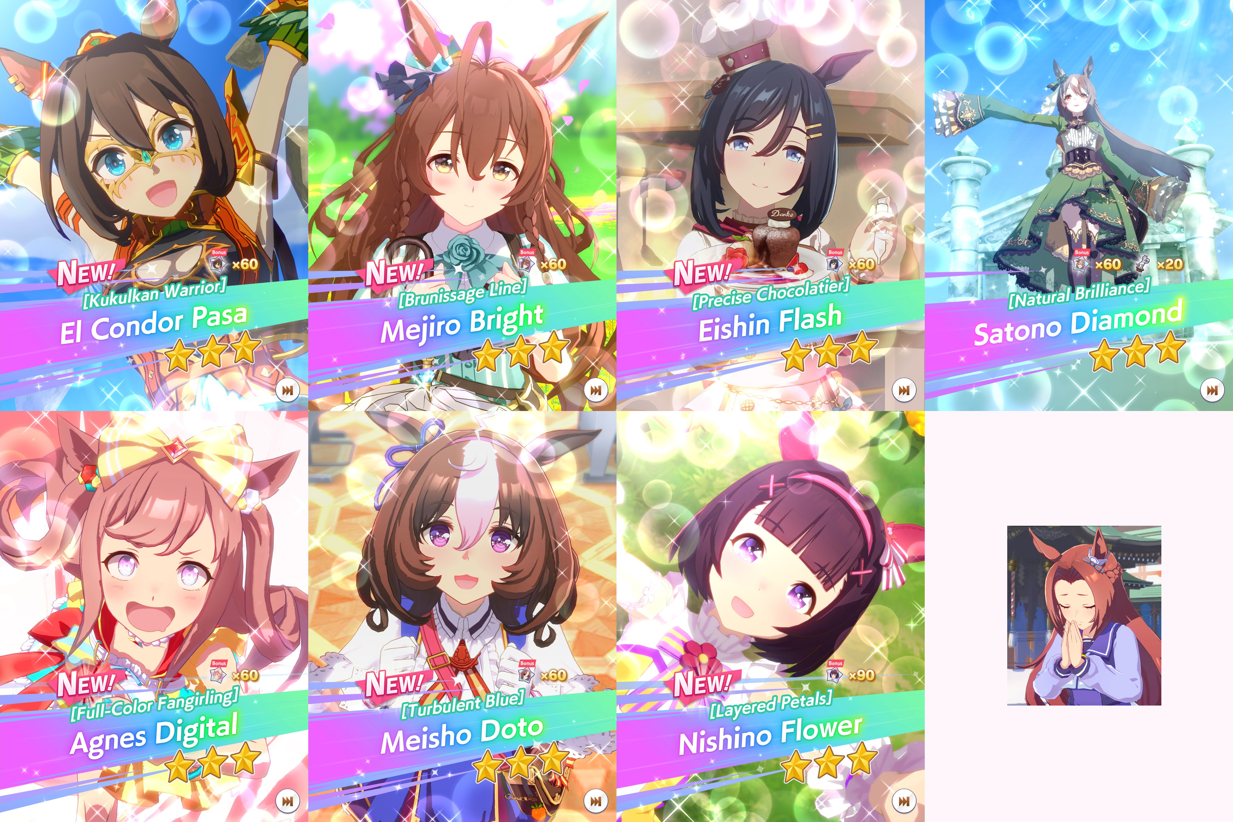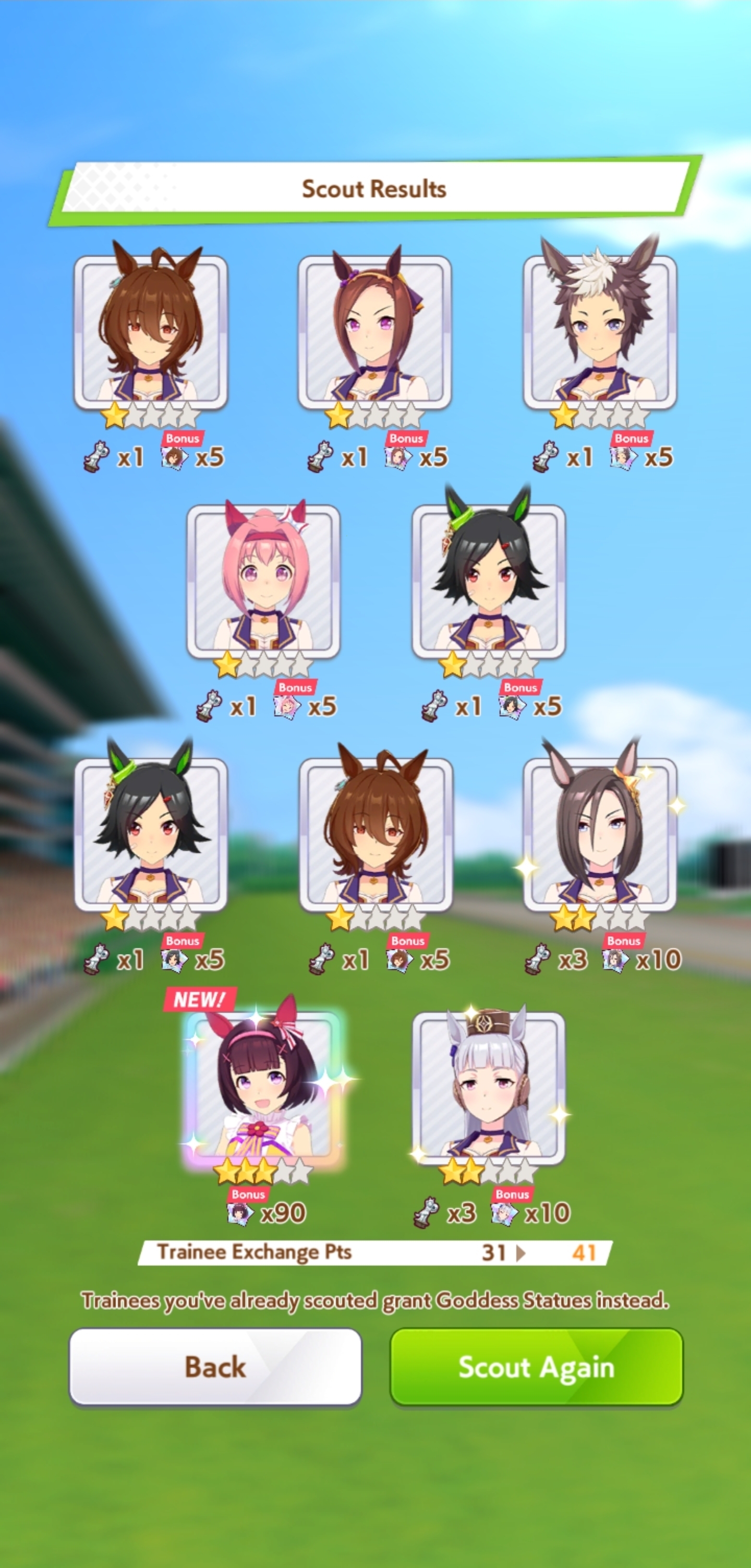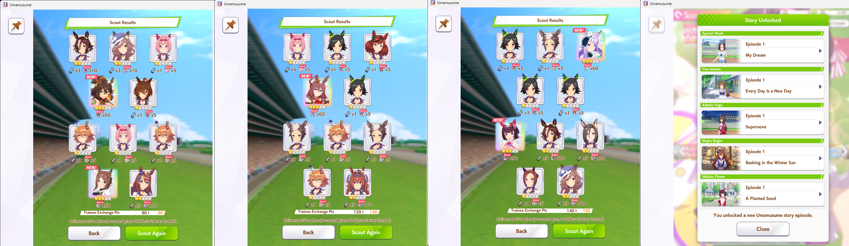 >>563445969200, but I got my oshi Admire Vega, plus Narita Brian, Taishin and Symboli Rudolf who has been avoiding capture all this time. Pretty pleased with that haul.