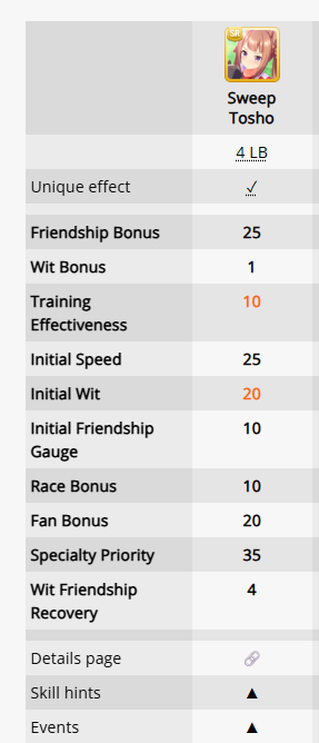 >>563439136yesit's an utterly unhinged as fuck card with>30 friendship bonus>15 mood bonus>10 training effectiveness>speed, power, stamina, and skill point bonus>generically good gold skill>guaranteed uma stan>scenario bonus>group card so it rainbows on everything