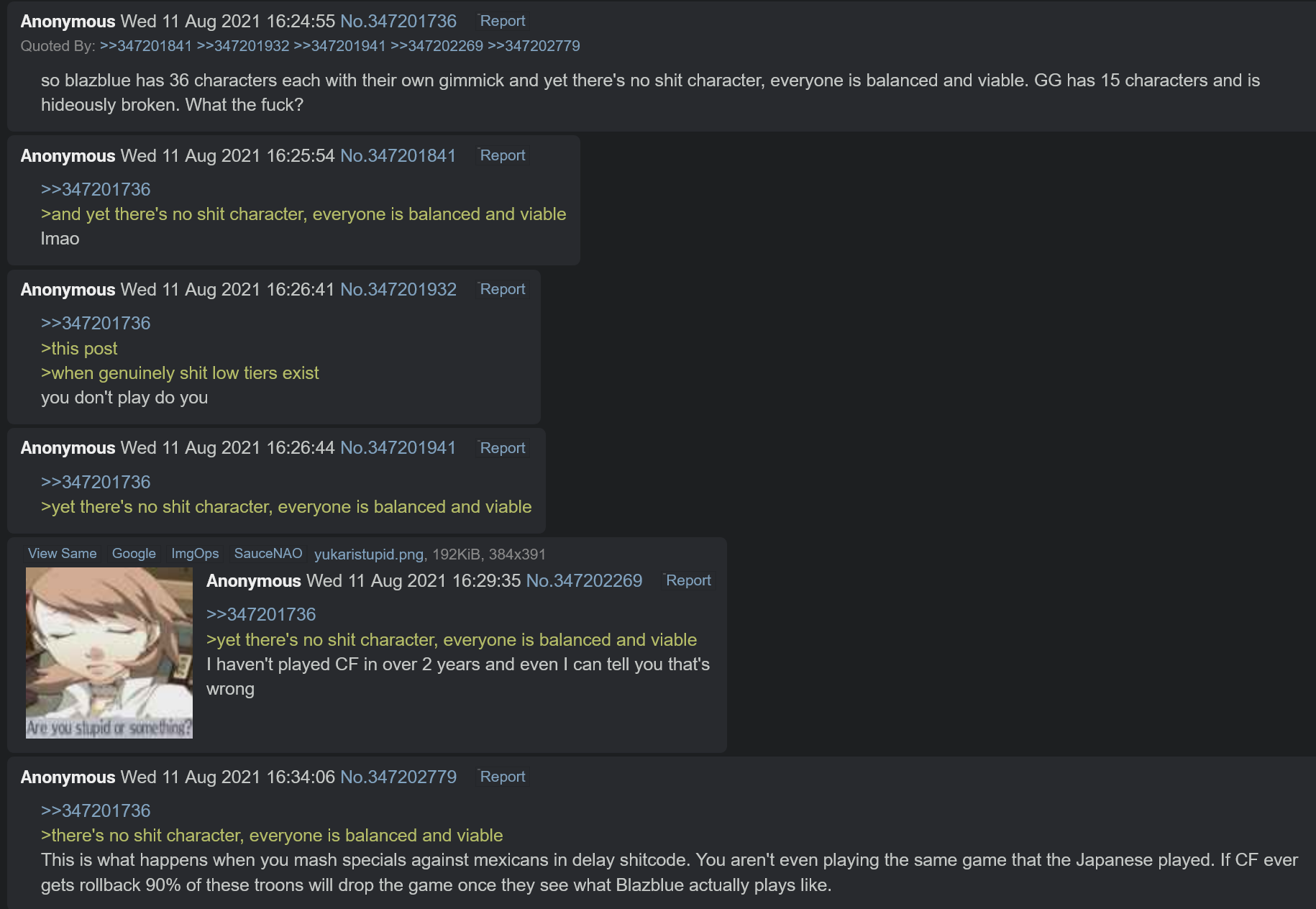 >>563581204He's right doods better stop playing the game because clearly your time is better spent on other fighting games, like......
