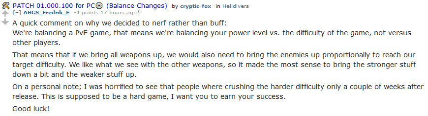 they're going to give the liberator 5 more damage and nerf the sweeper, and make an undocumented change to fire damage or durable damage or some bullshit that will fuck over unrelated weapons because they don't know what they're doing and can't keep track of the fucking spider's web of game systems they've created that all affect one another