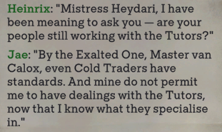 I like Durance because he actually has a personality and views and getting an insight into the making of the godhammer bomb and what the magranites were up to was cool