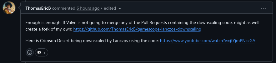 >>563598970>>563599965Valve is so lazy but I guess it is not in their interest to update gamescope because it is specced for steam deck.I still think they should improve fps limiting among other things. Now it just defaults to 1/2 refresh rate and that's just shitty all in all. Luckily I'm not dependent on using goyscope.