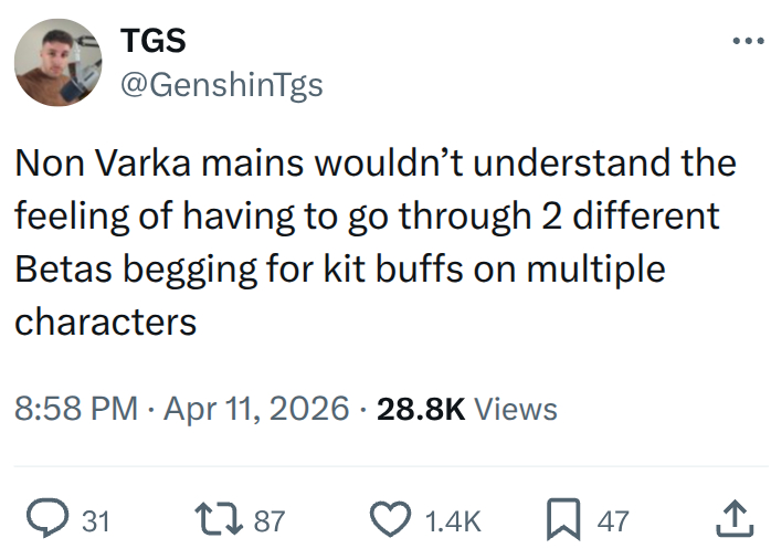 >Gets Durin>Gets witches buffs>gets all the old witches as top tier buffers>Gets a dedicated set and all his supports get a dedicated set>Gets a 2nd dedicated support set>Gets Nicole>Gets C6 4 star baitStill worse than Flins, the weakest Lunar dps. Varka btw.