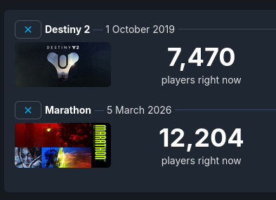 Projected max concurrent player count for all platforms.Marathon: 38053Destiny 2: 54213