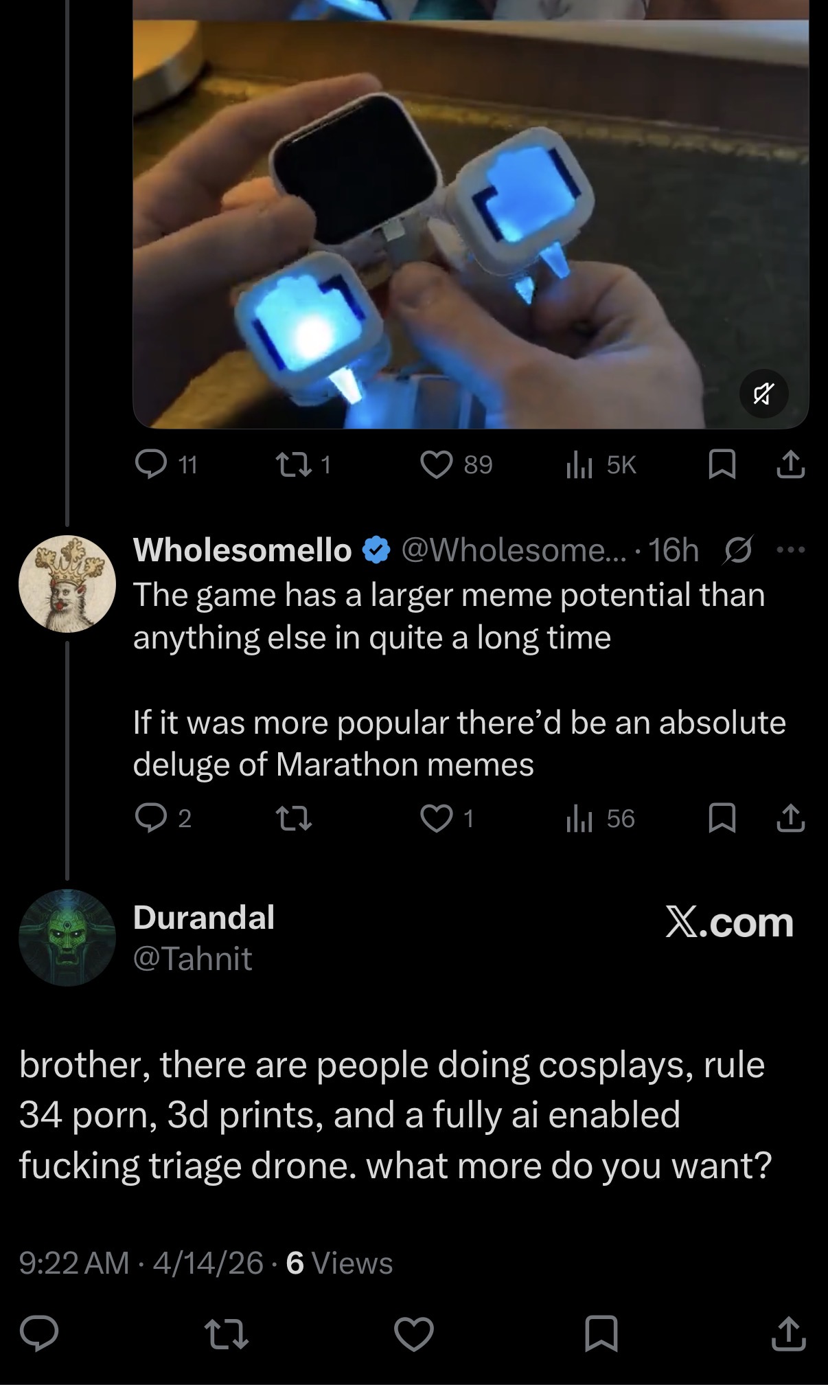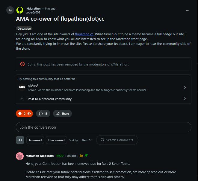 >see reddit post about queue times for Maraflop being a major issue and that the game is dying>not even 30 minutes and the thread got locked and deletedMarakeks are going to commit mass suicide when Bungie announces Marathon's shutdown or maintenance mode.