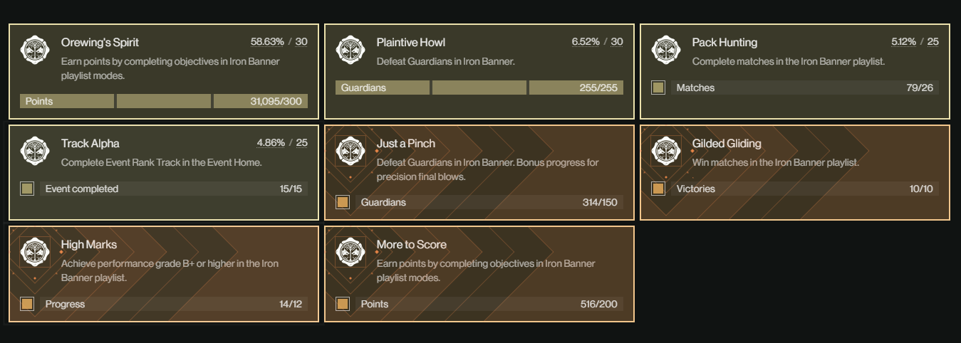 >>563664574In one(1) match of Iron Banner i got the following:>all 3 "new" guns>4 pieces of fake ass & iron setand this is only because I was on top of the scoreboard and got above B+ rating.