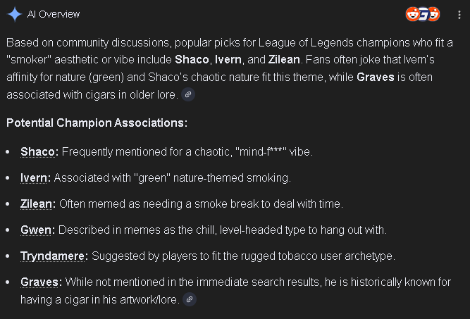 >player names themself something like 'Best (Champion) NA' or '(Champion) 1v9' >they lose on that champion never gets old